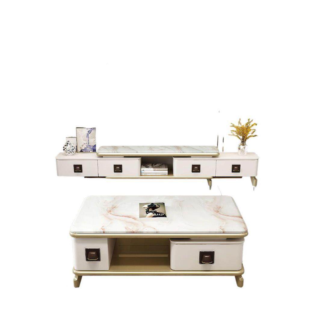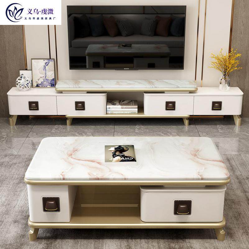 轻具奢电视柜茶套几NUG组装现代简约客厅大理石家小合户型可伸缩