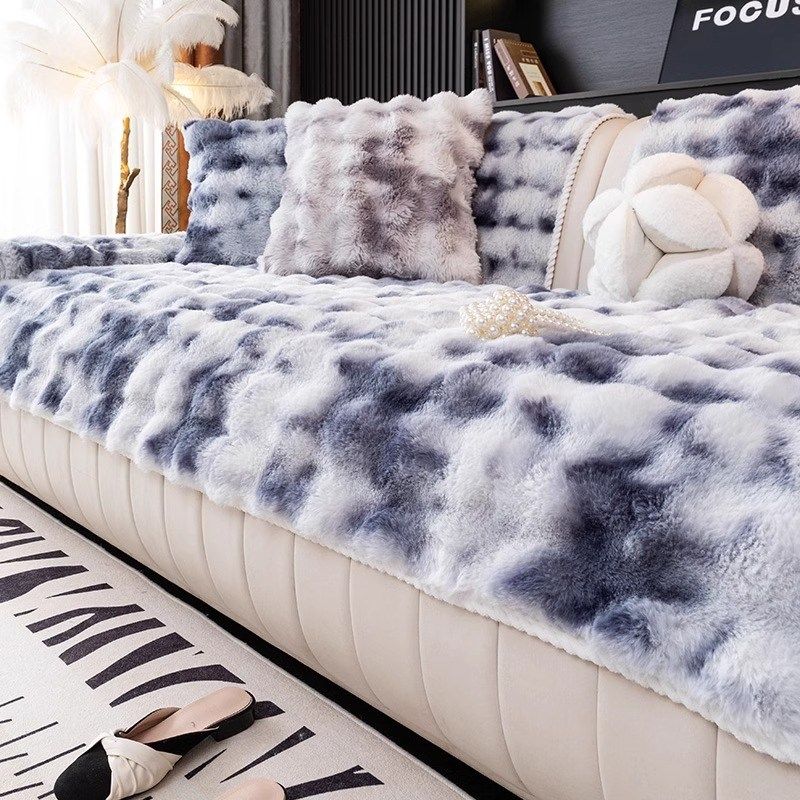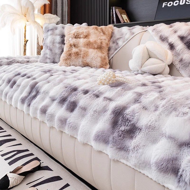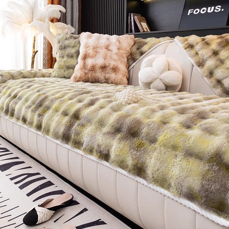 冬季兔毛绒沙发垫加厚坐垫防滑高级感全包皮沙发套罩直排沙发盖布