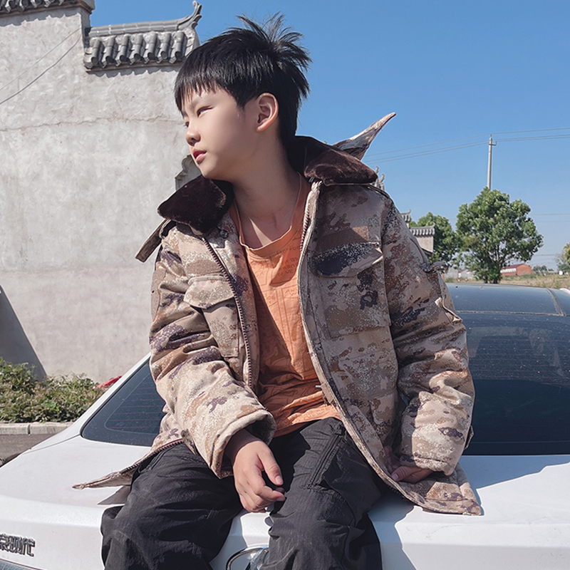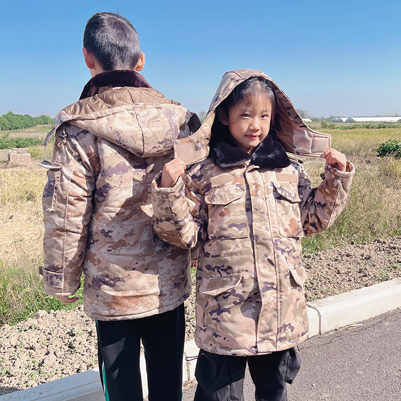 新款男女童儿童迷彩军大衣棉服中长款小学生冬季户外防寒加厚棉袄