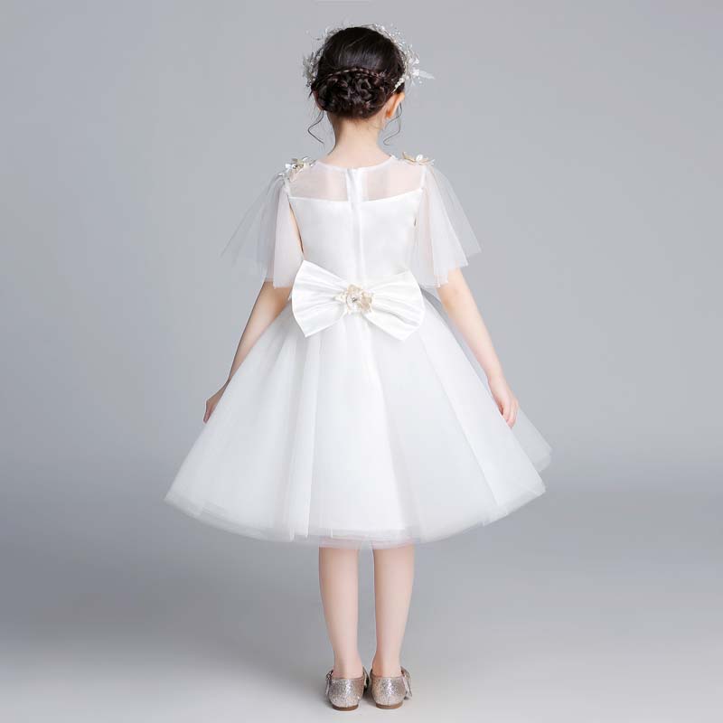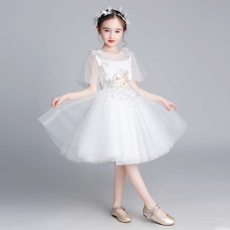 儿童公主裙蓬蓬纱花童婚纱裙女童白色晚礼服女孩生日钢琴演出服夏