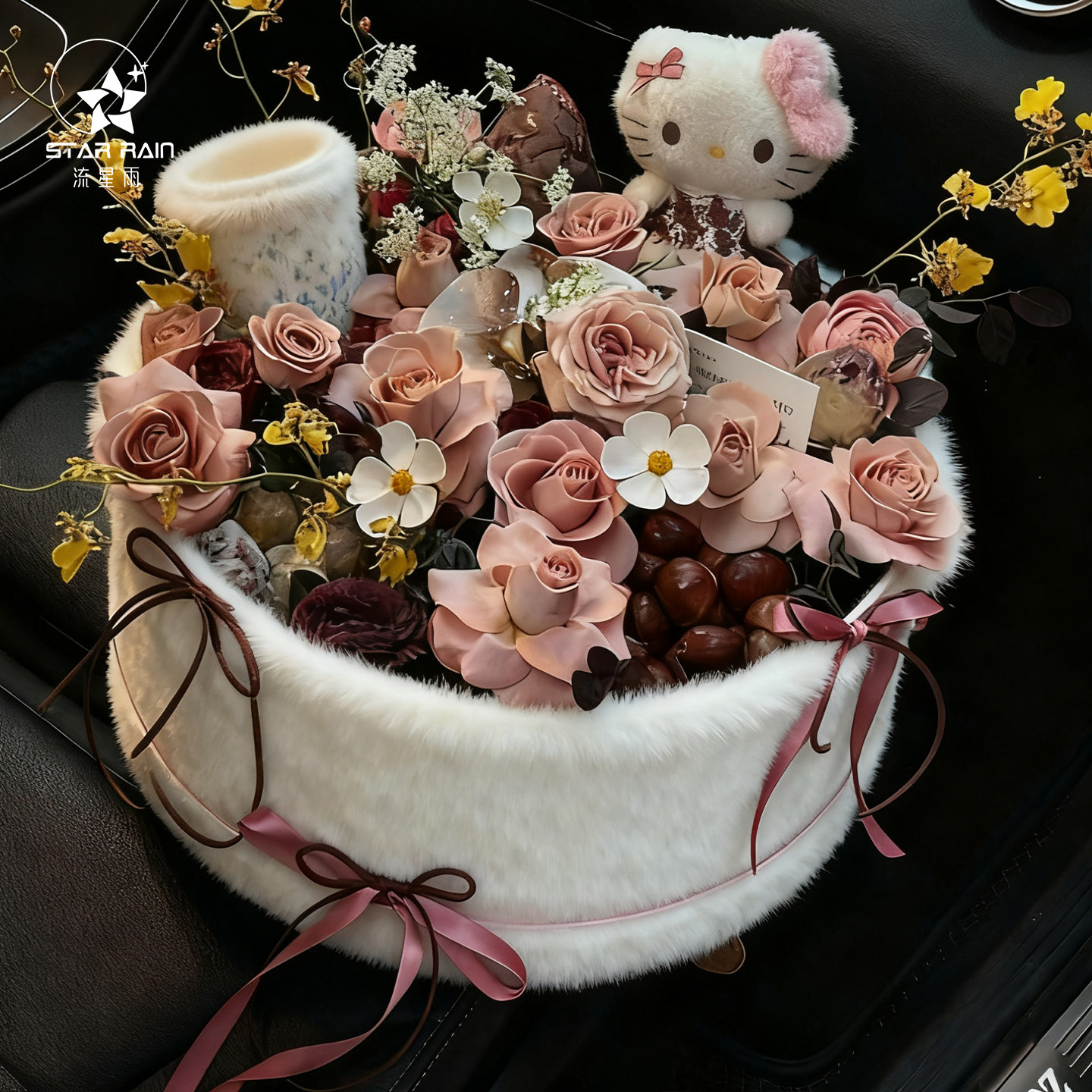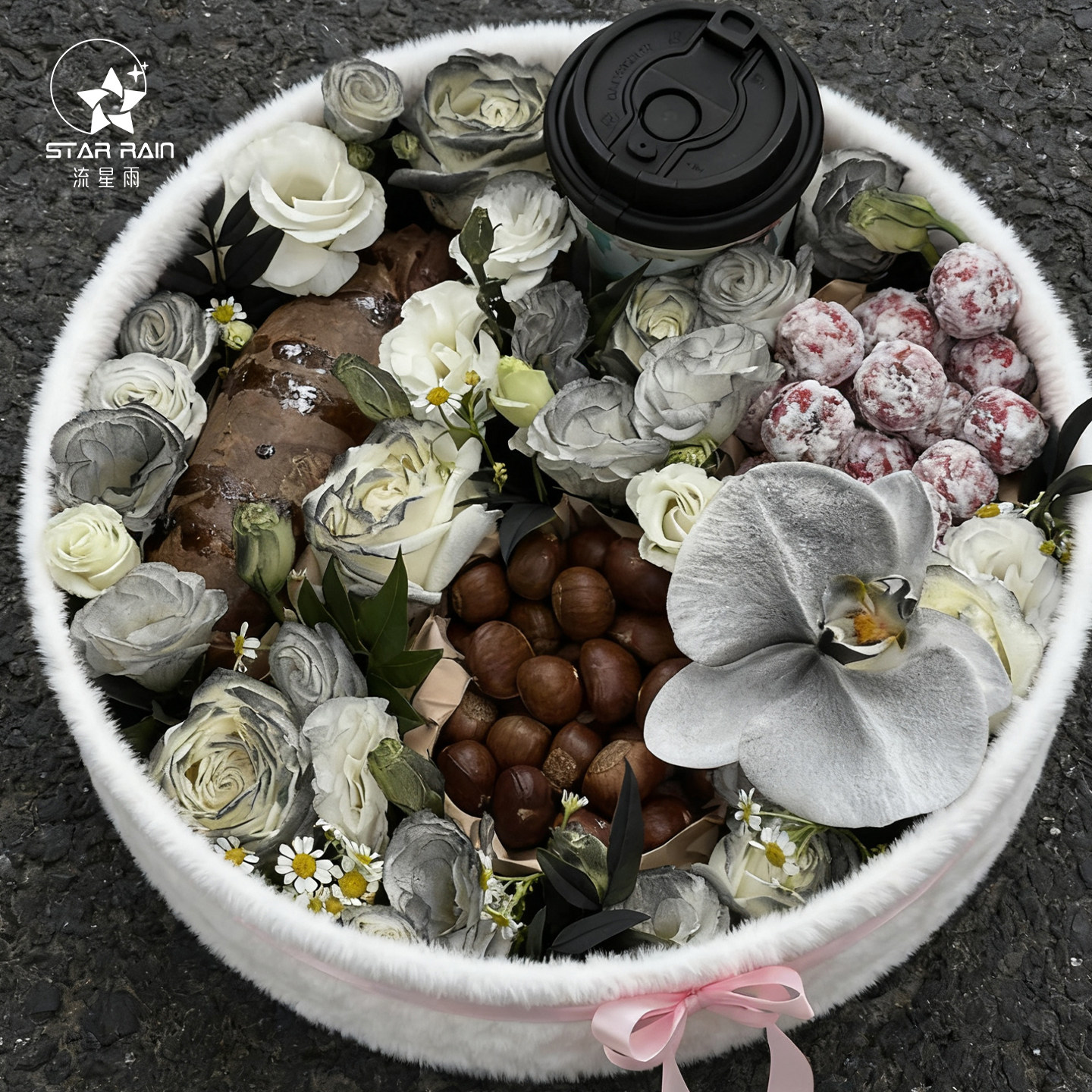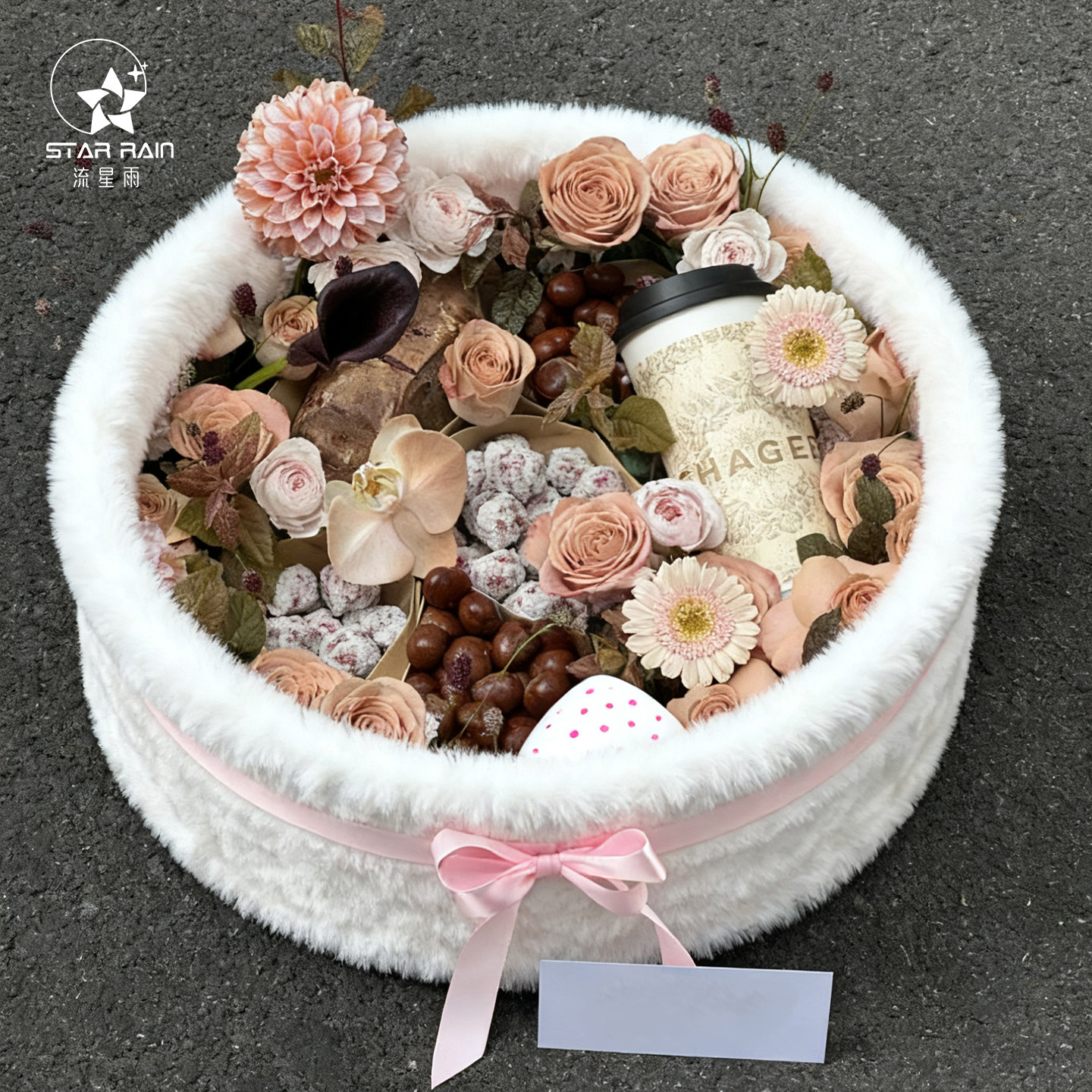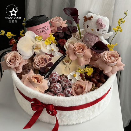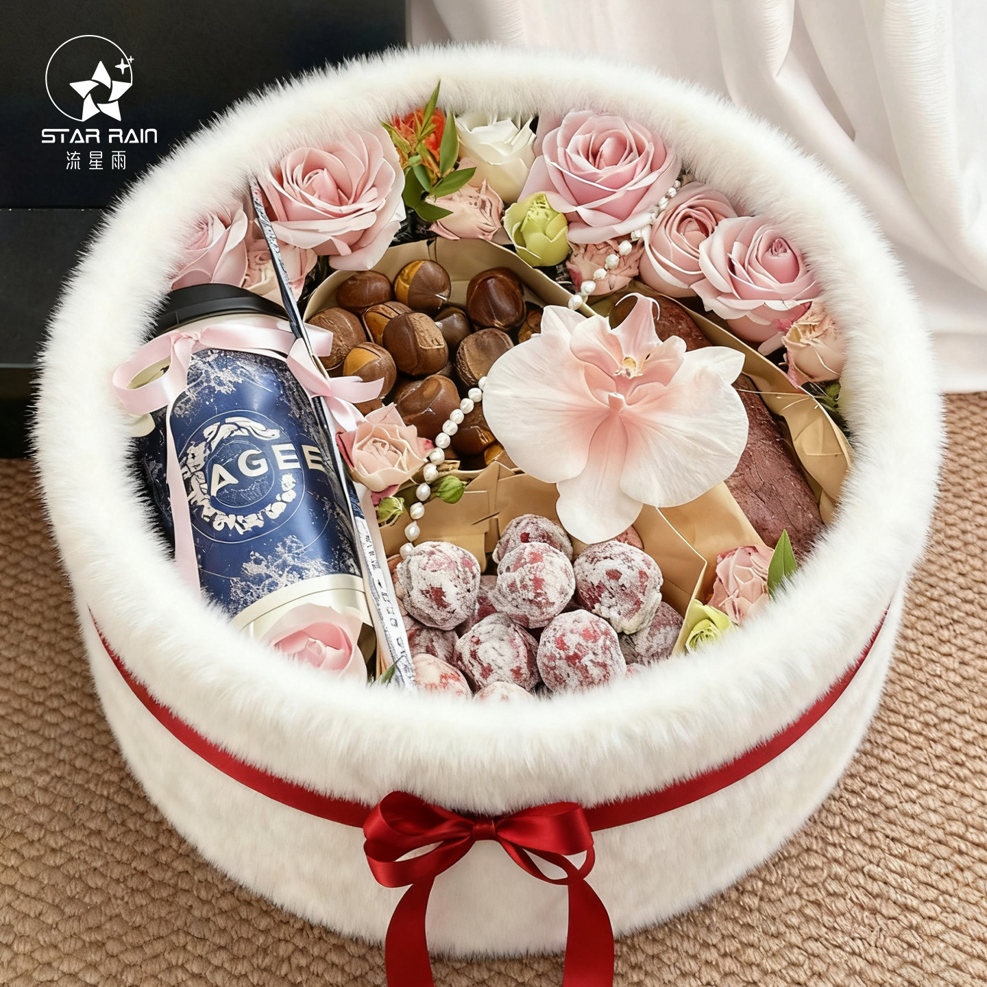 流星雨栗刻好运入冬四件套圆形毛绒礼盒鲜花包装盒花束插花花盒