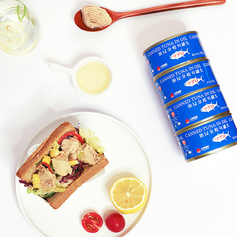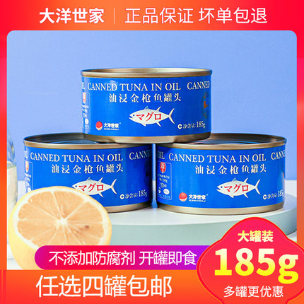 【四罐包邮】大洋世家油浸金枪鱼罐头185g吞拿鱼鲔鱼开罐即食海鲜