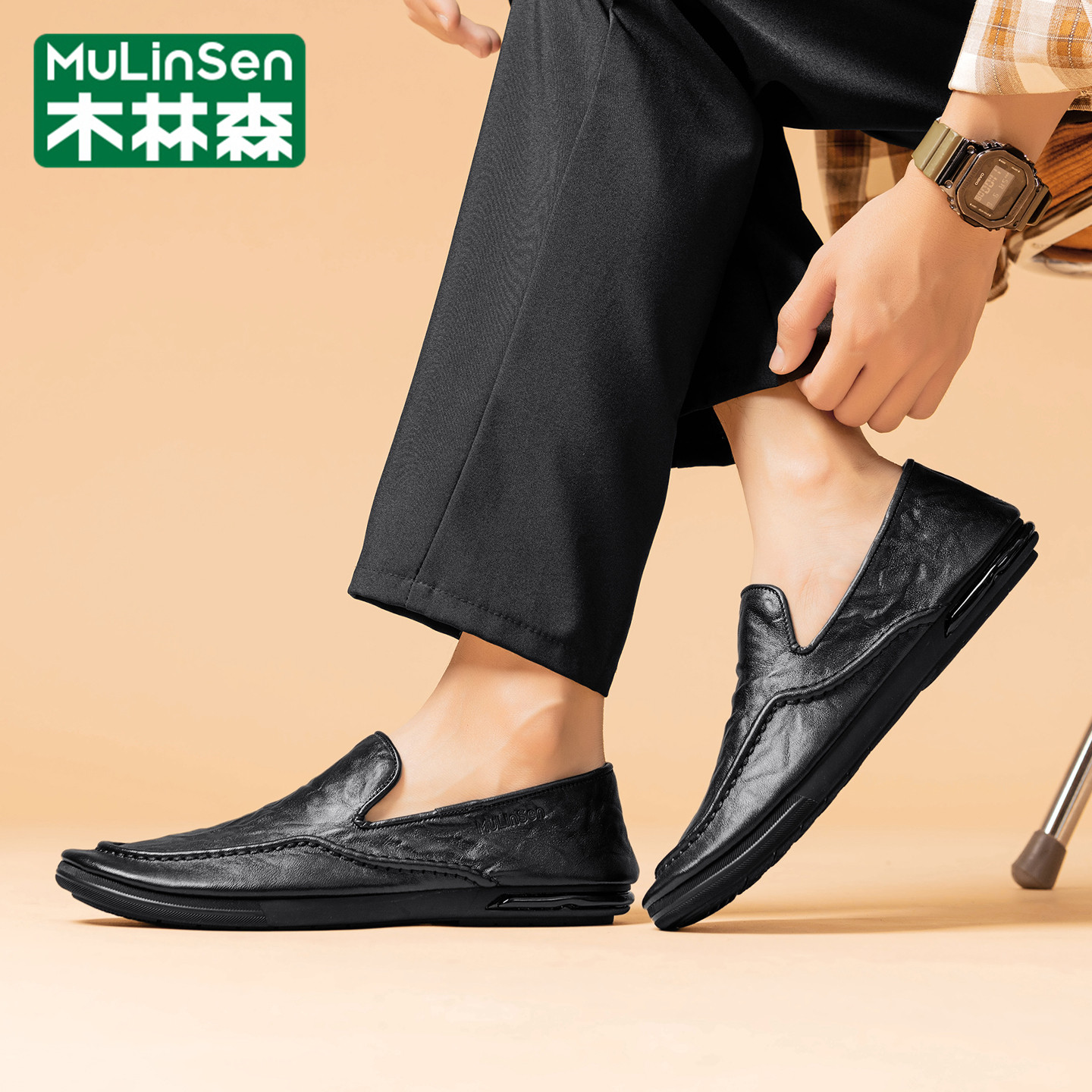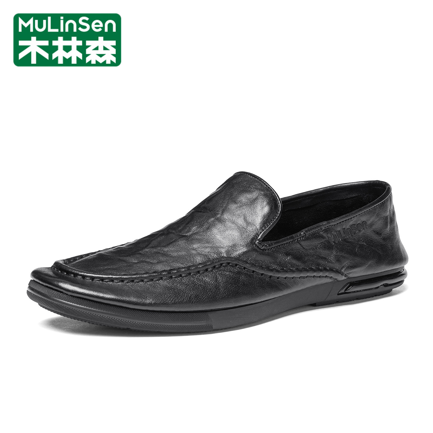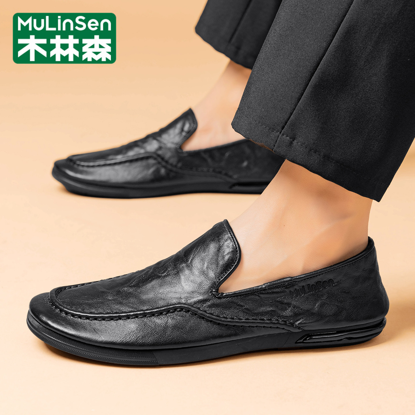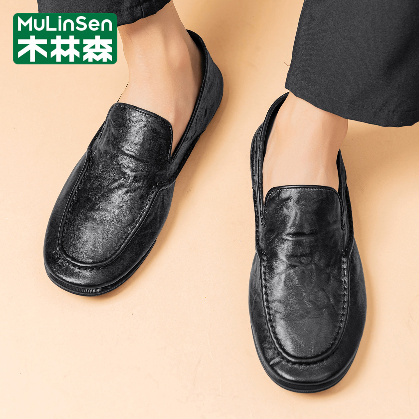 木林森豆豆鞋男冬季休闲英伦商务一脚蹬乐福爸爸平底气垫工作皮鞋
