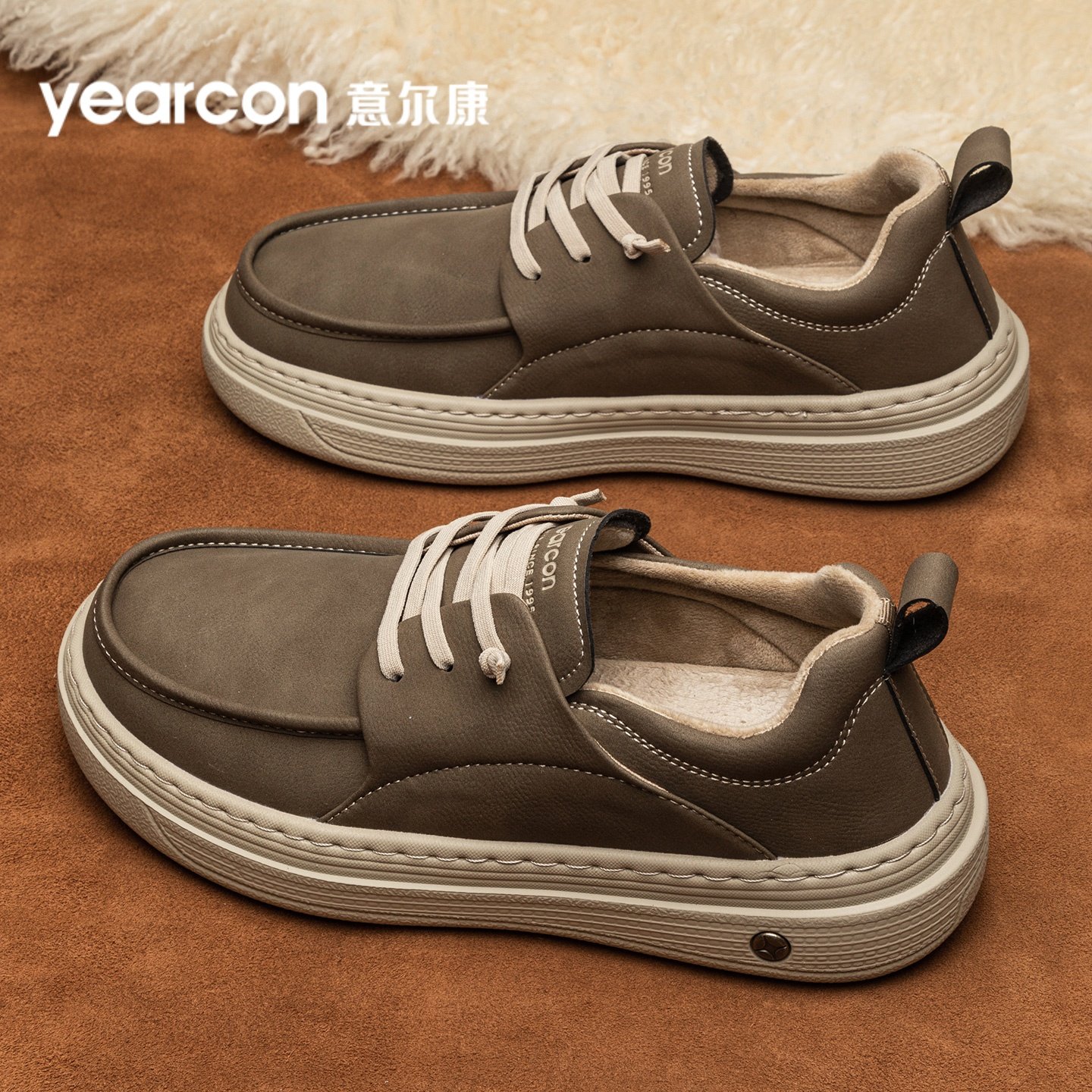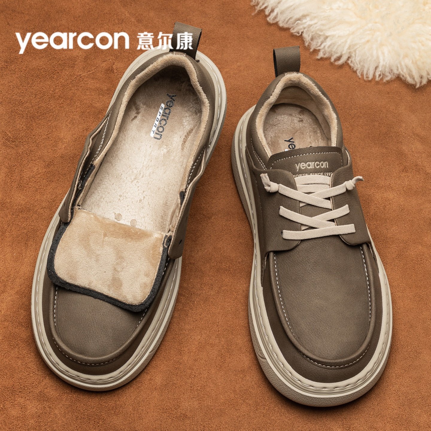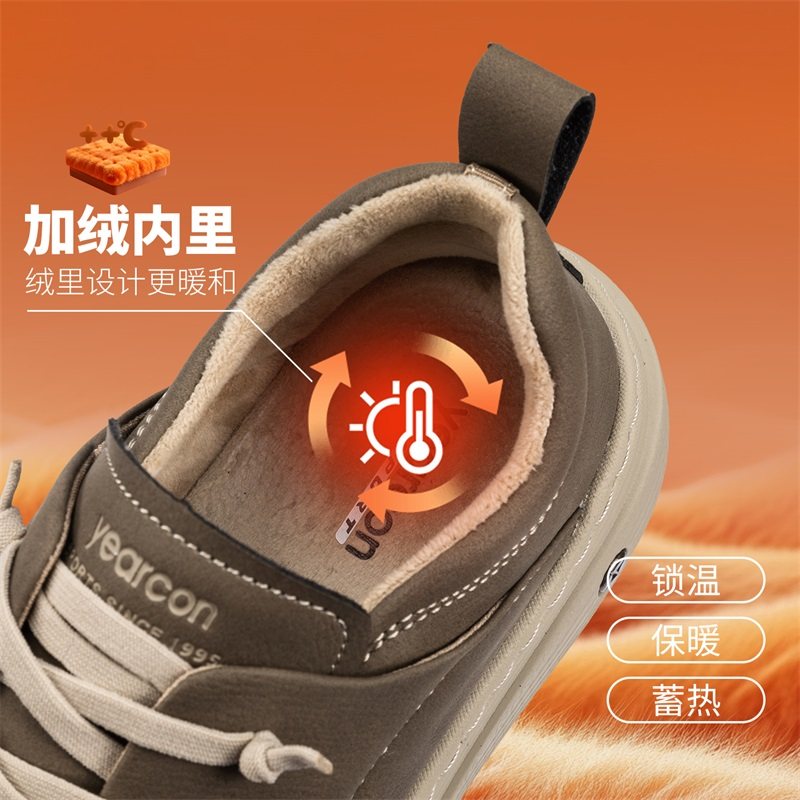 意尔康真皮板鞋男款冬季加绒棉鞋一脚蹬休闲皮鞋乐福鞋开车爸爸鞋