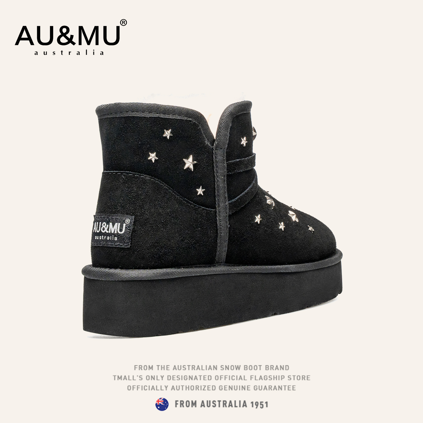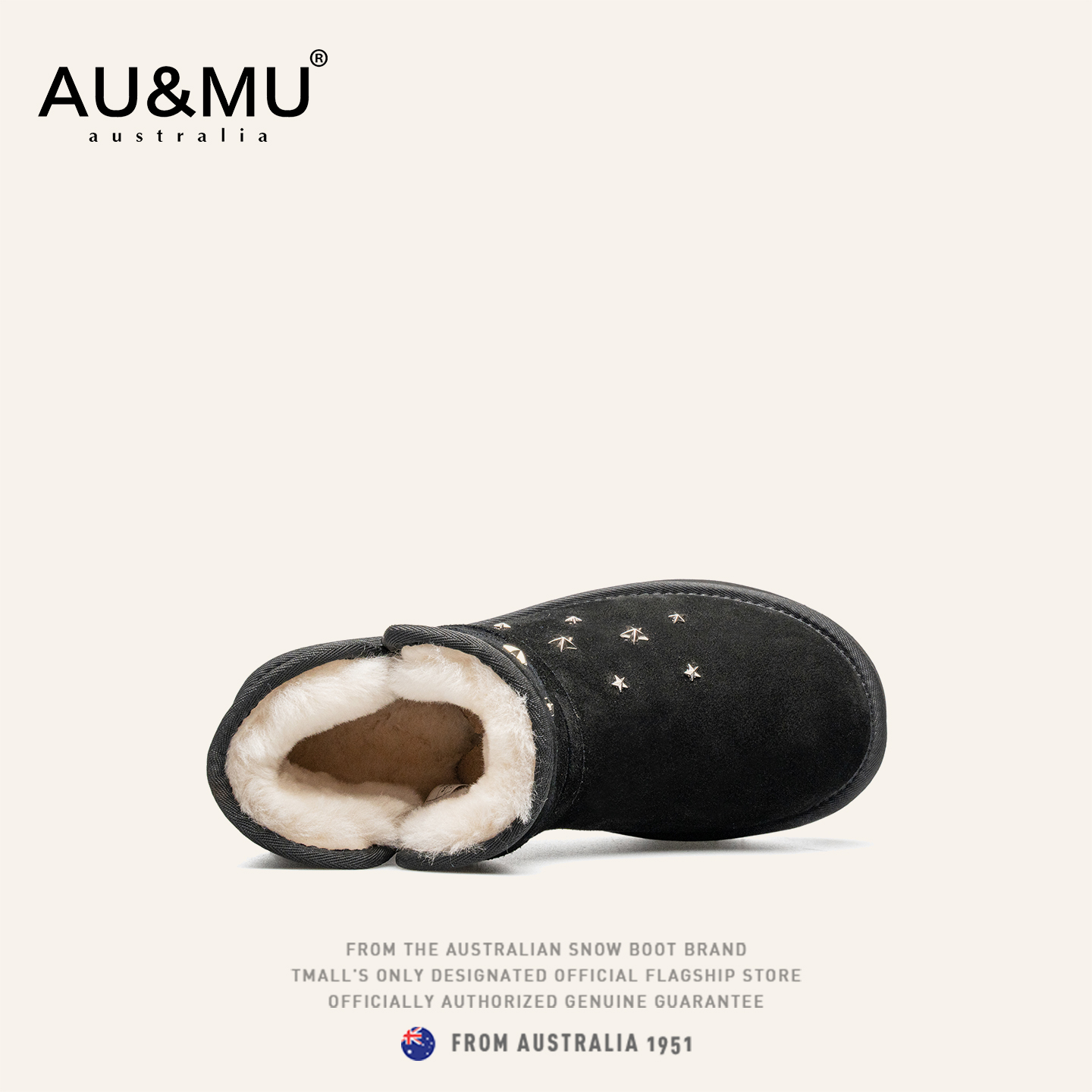 AUMU雪地靴女皮毛一体2025冬季新品时尚星星防滑增高保暖短筒靴子