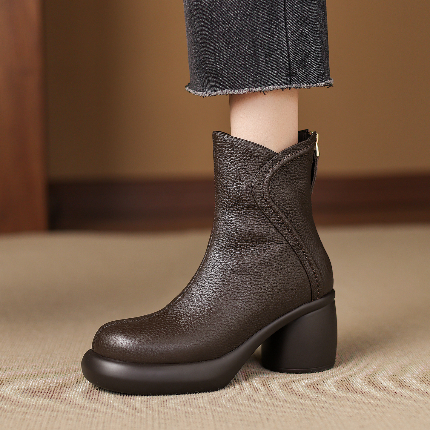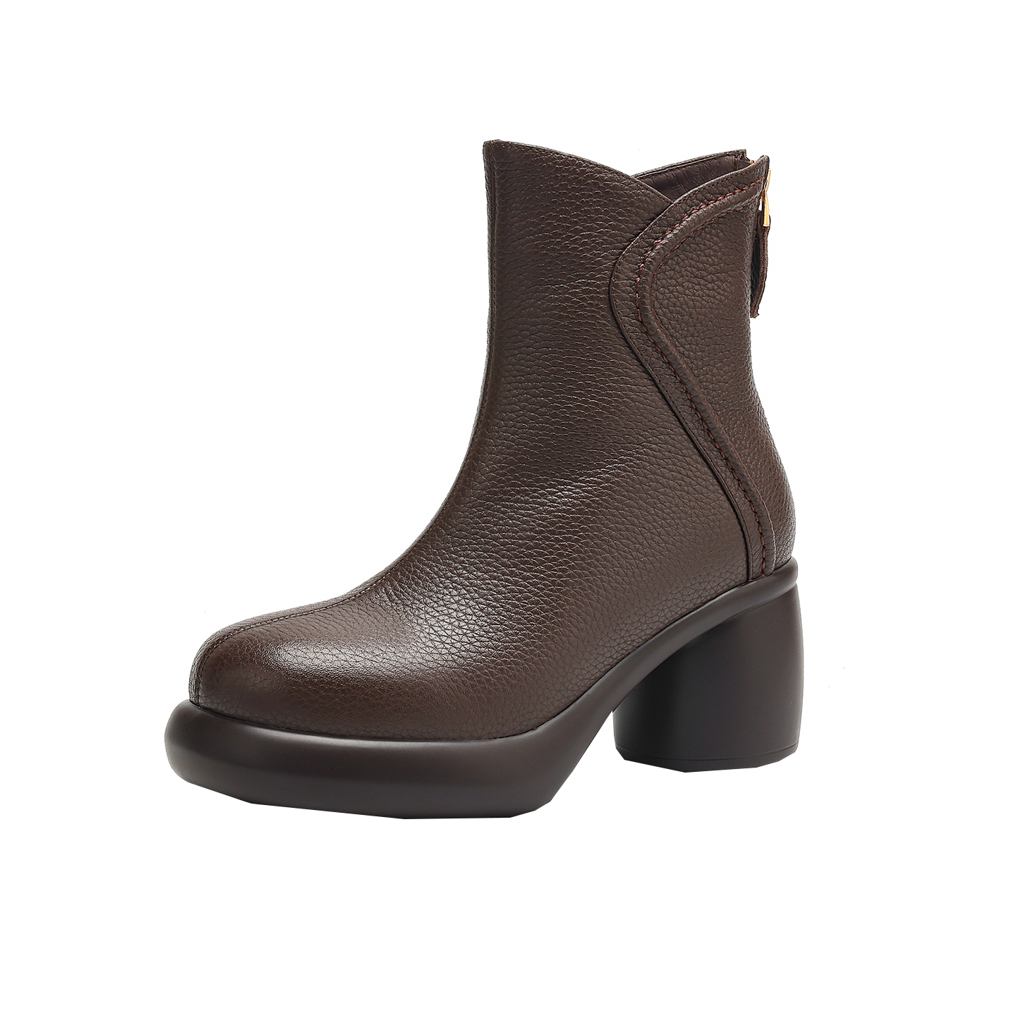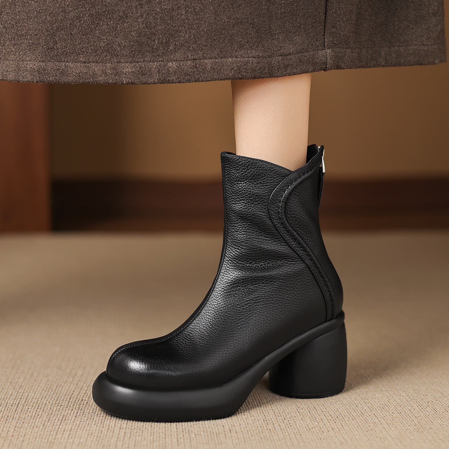 7cm真皮软底高跟短靴女冬季粗跟厚底马丁靴加厚羊羔毛保暖雪地靴