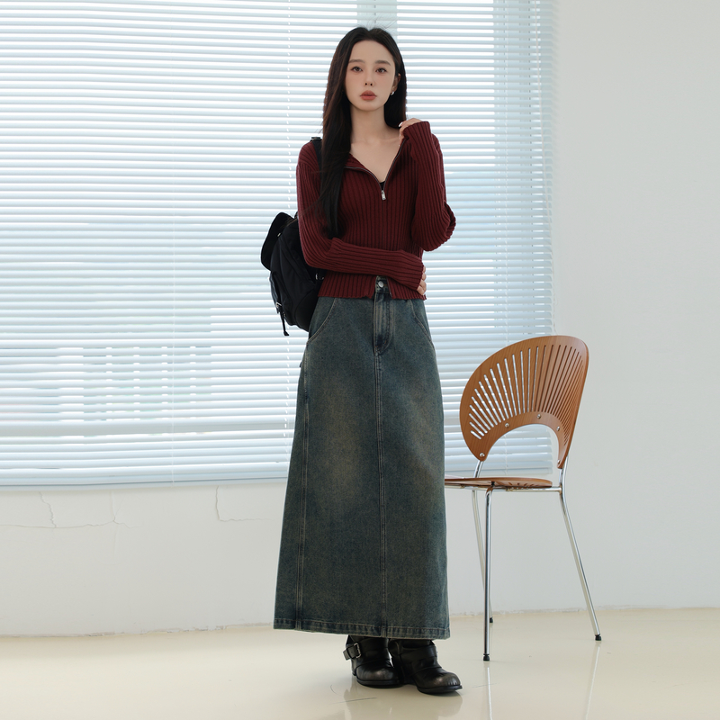 AIRIQI秋季新款休闲百搭口袋设计感直筒开叉牛仔半身裙AI43NQ111