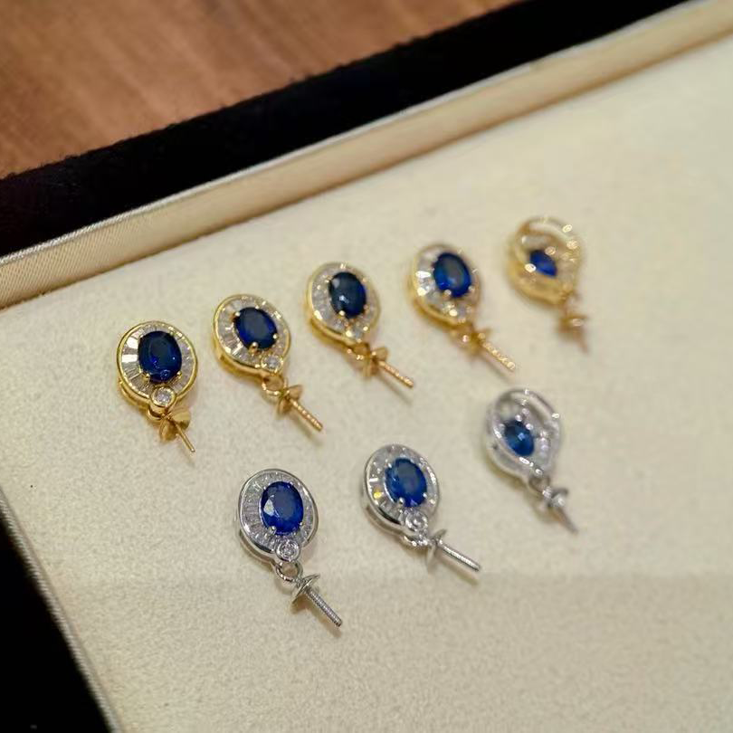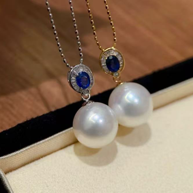 18k金钻石10-13mm淡水珍珠吊坠配件搭配天然椭圆蓝宝挂件裸珠空托