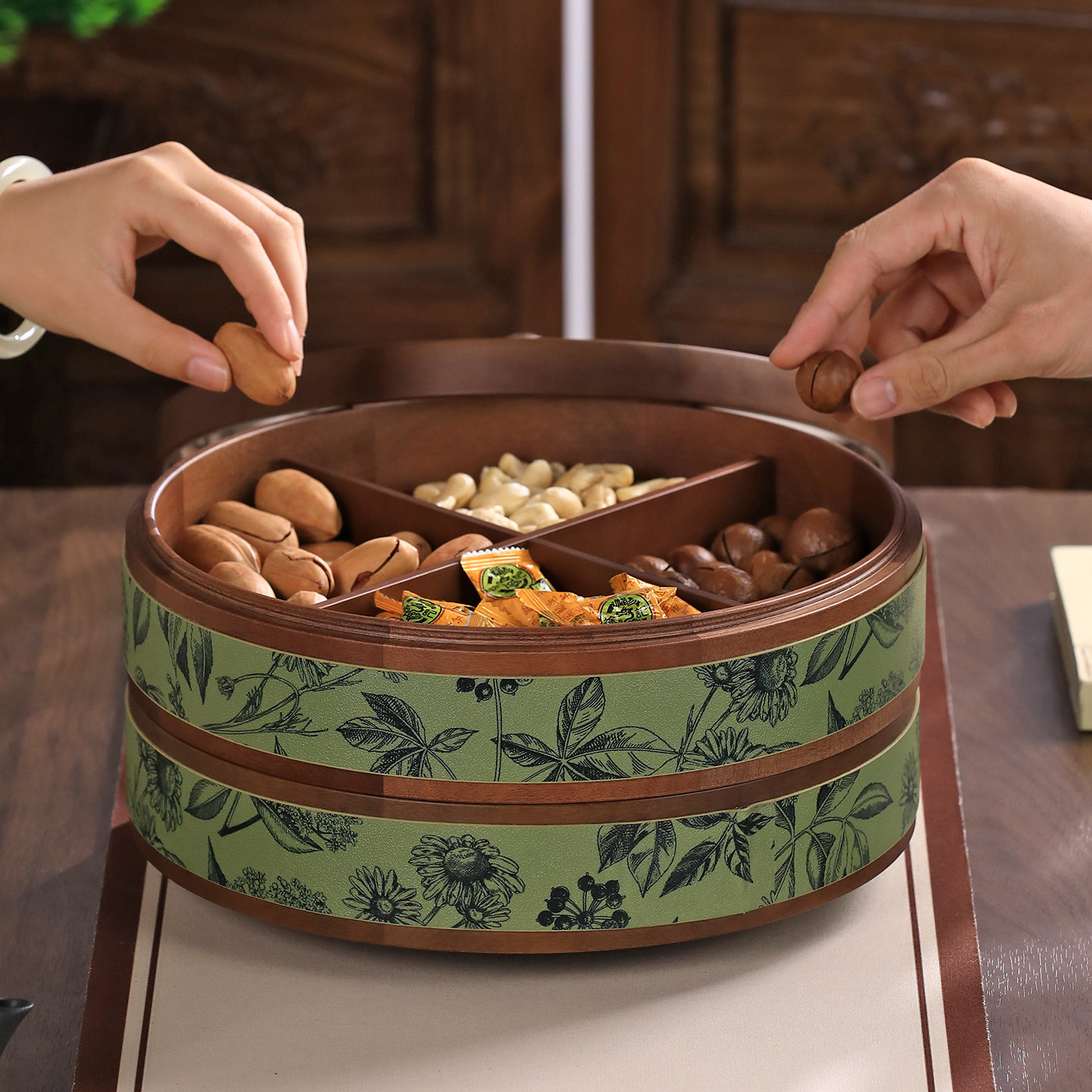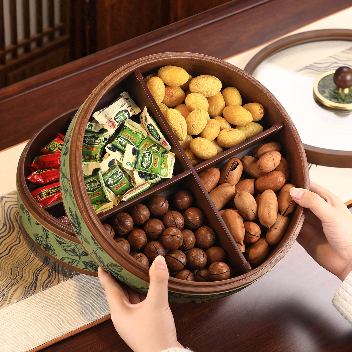新中式实木分格干果盒客厅家用果盘高端精致高颜值零食坚果收纳盘