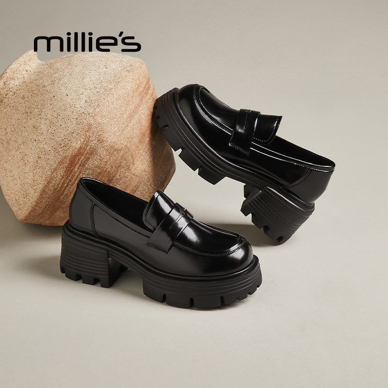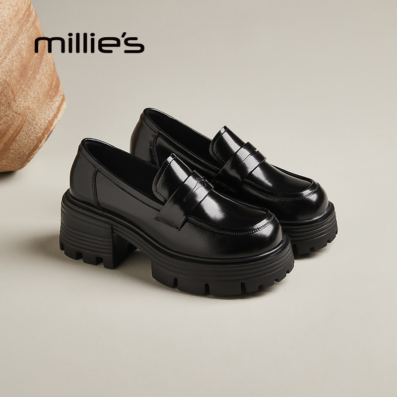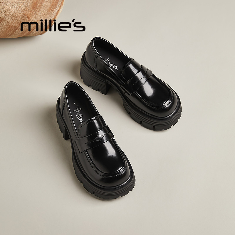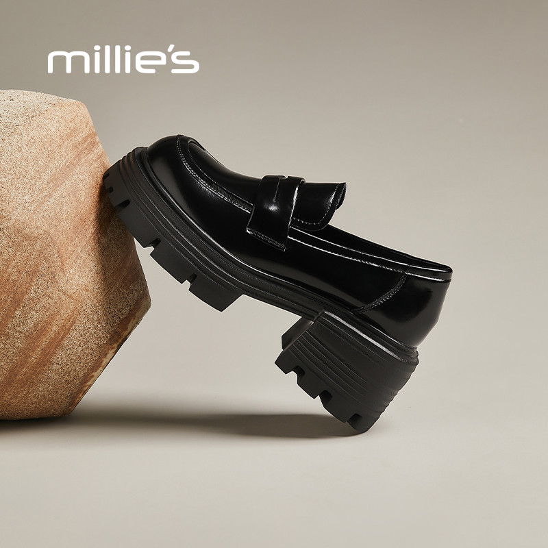 MILLIE'S/妙丽爆款厚底乐福鞋女2026春秋款休闲鞋甜妹风浅口单鞋