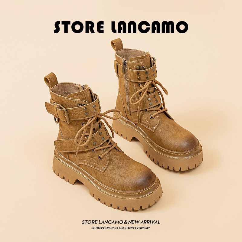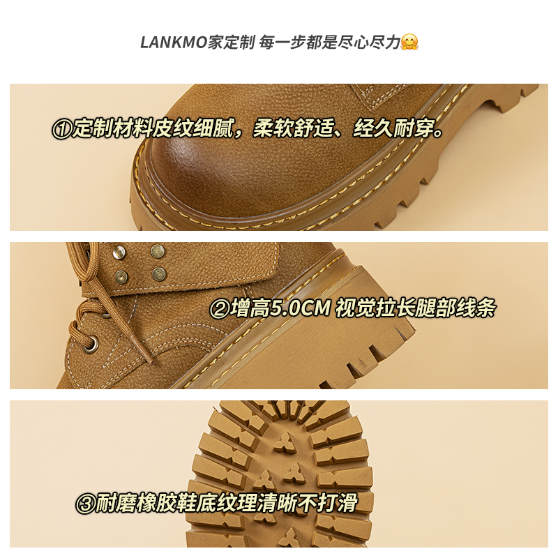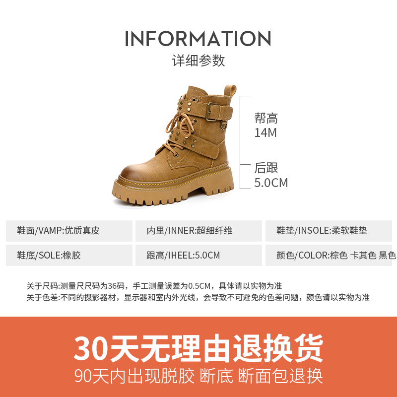 德国2025新款马丁靴女复古百搭真皮增高工装短靴春秋大黄靴单靴子