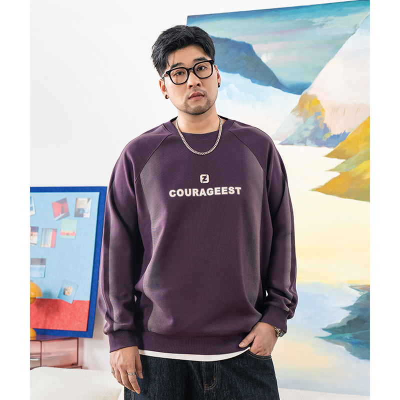 黑劲大码男装字母撞色卫衣胖子男士圆领套头宽松秋季上衣高级潮