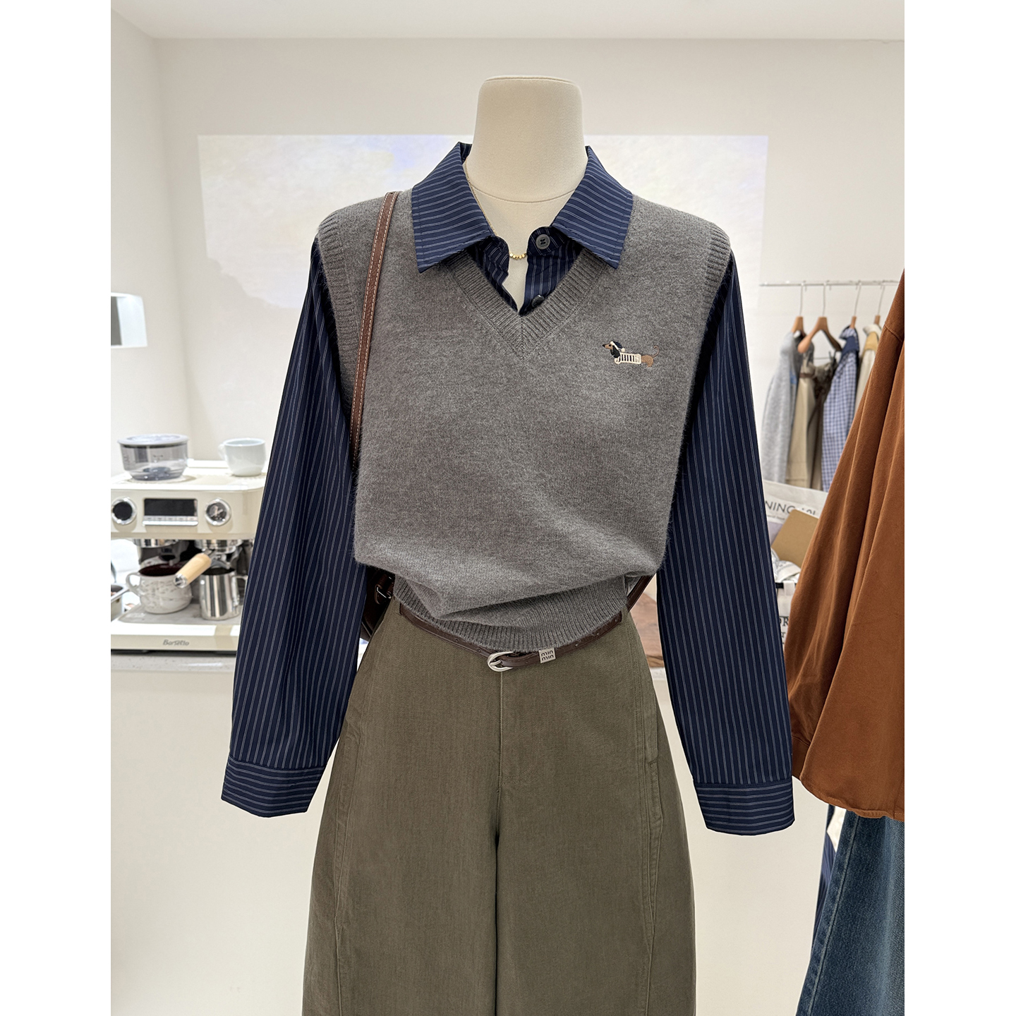 韩系百搭小众设计感短款毛衣衬衫