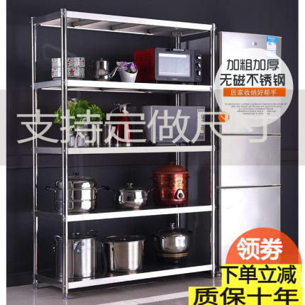 不锈钢厨房置物架家用落地多层5收纳储物架子微波炉烤箱定做货架4