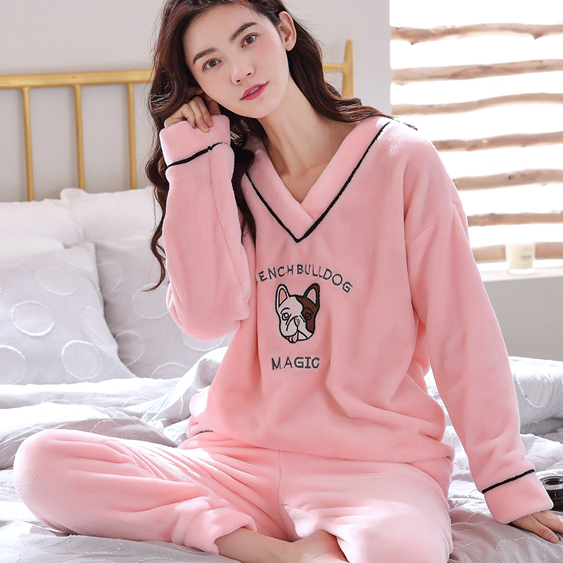 春秋冬季加厚法兰绒睡衣女士青中年保暖加绒珊瑚绒套头家居服长袖