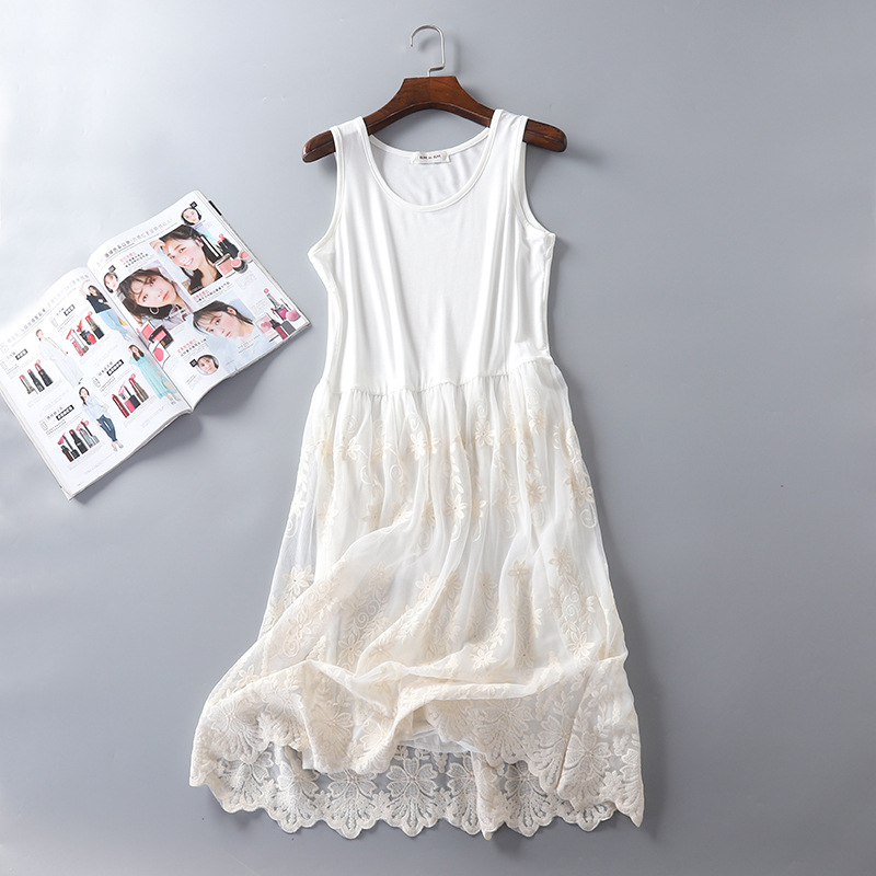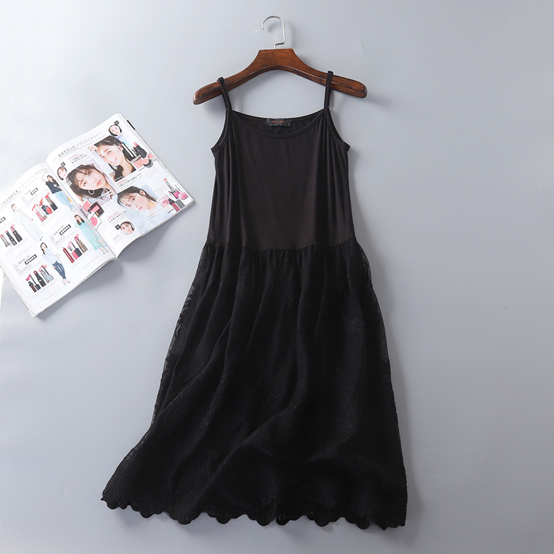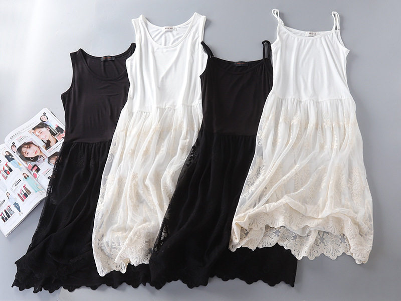 秋冬新款重工W花内搭衬裙莫代尔拼接网纱连衣裙韩版蕾丝打底长裙