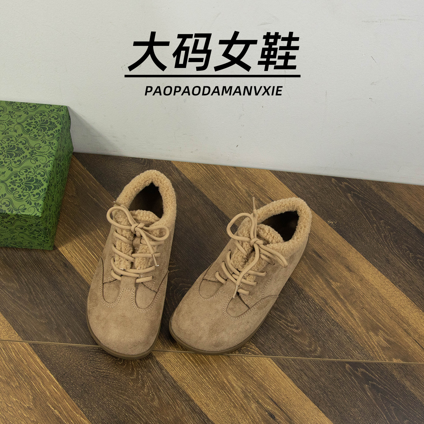 大码女鞋41到42宽脚胖毛毛鞋2025新款复古英伦风平底加绒勃肯鞋