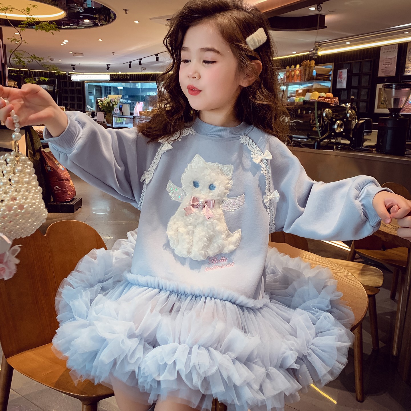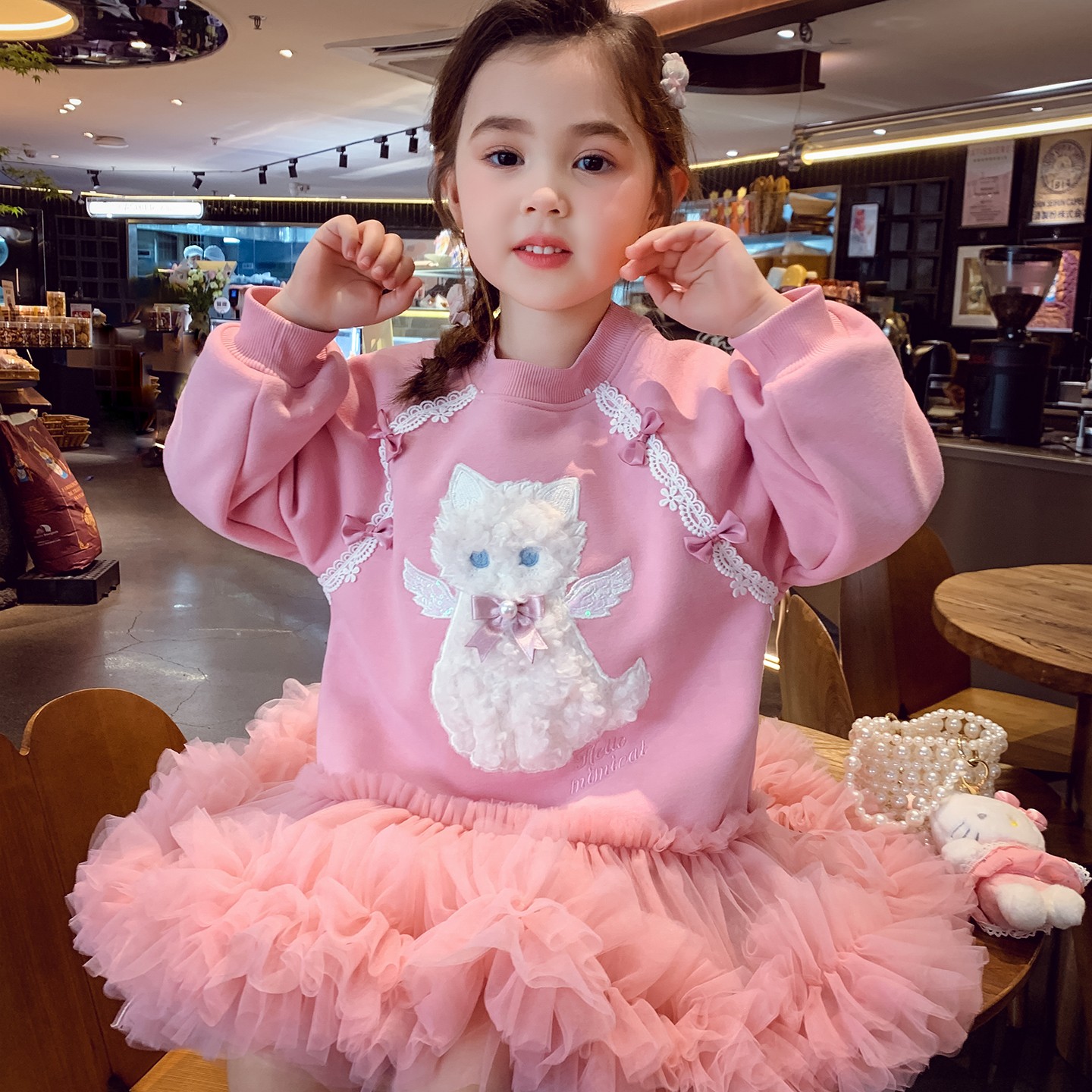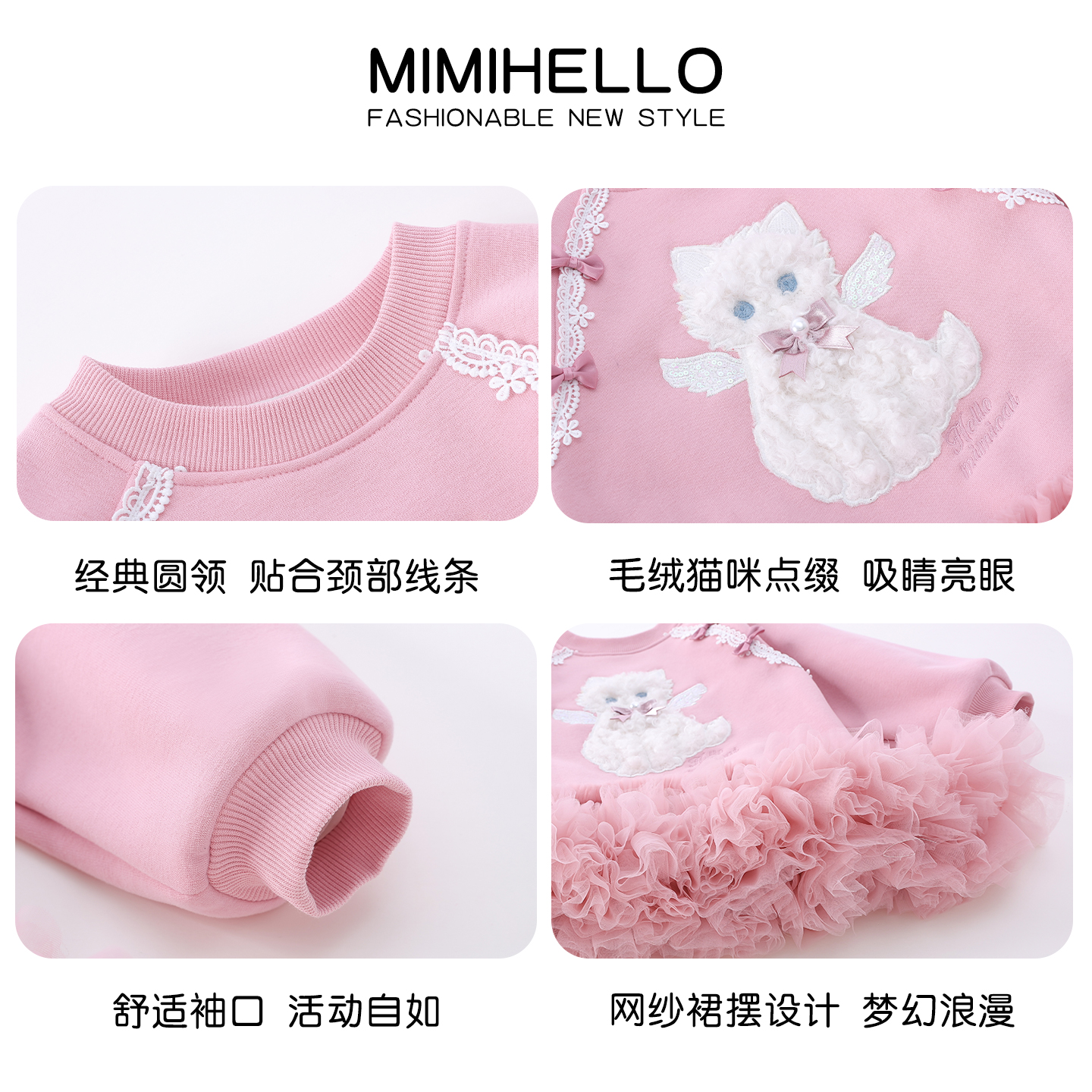 女童加绒卫衣裙冬装2025新款儿童韩版立体卡通网纱蓬蓬连衣裙女孩