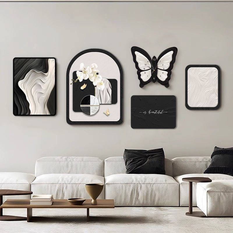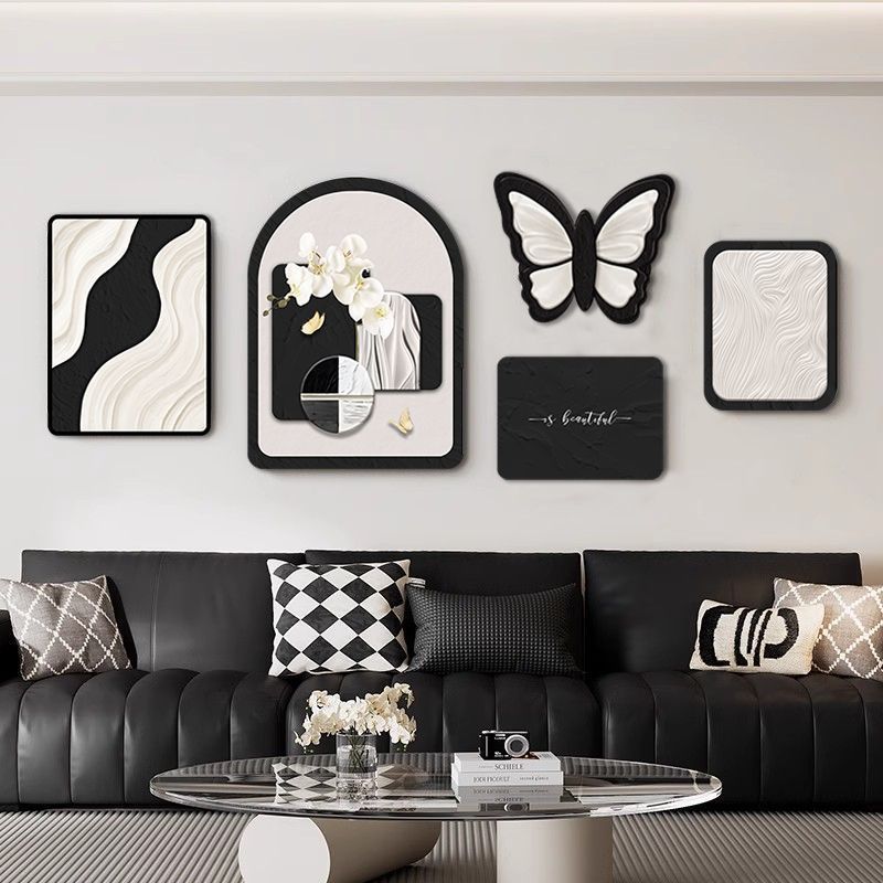 现代风抽象客厅装饰画高级感大气沙发背景墙挂画法式艺术组合壁画