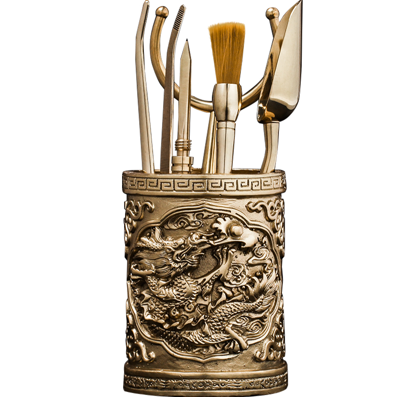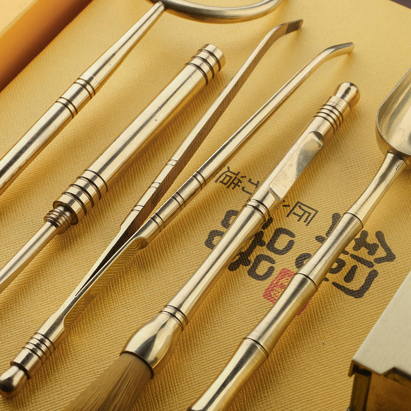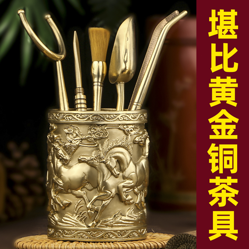 纯铜功夫茶具配件 茶艺茶夹茶洗茶叶罐茶筒6件套装 茶道六君子铜