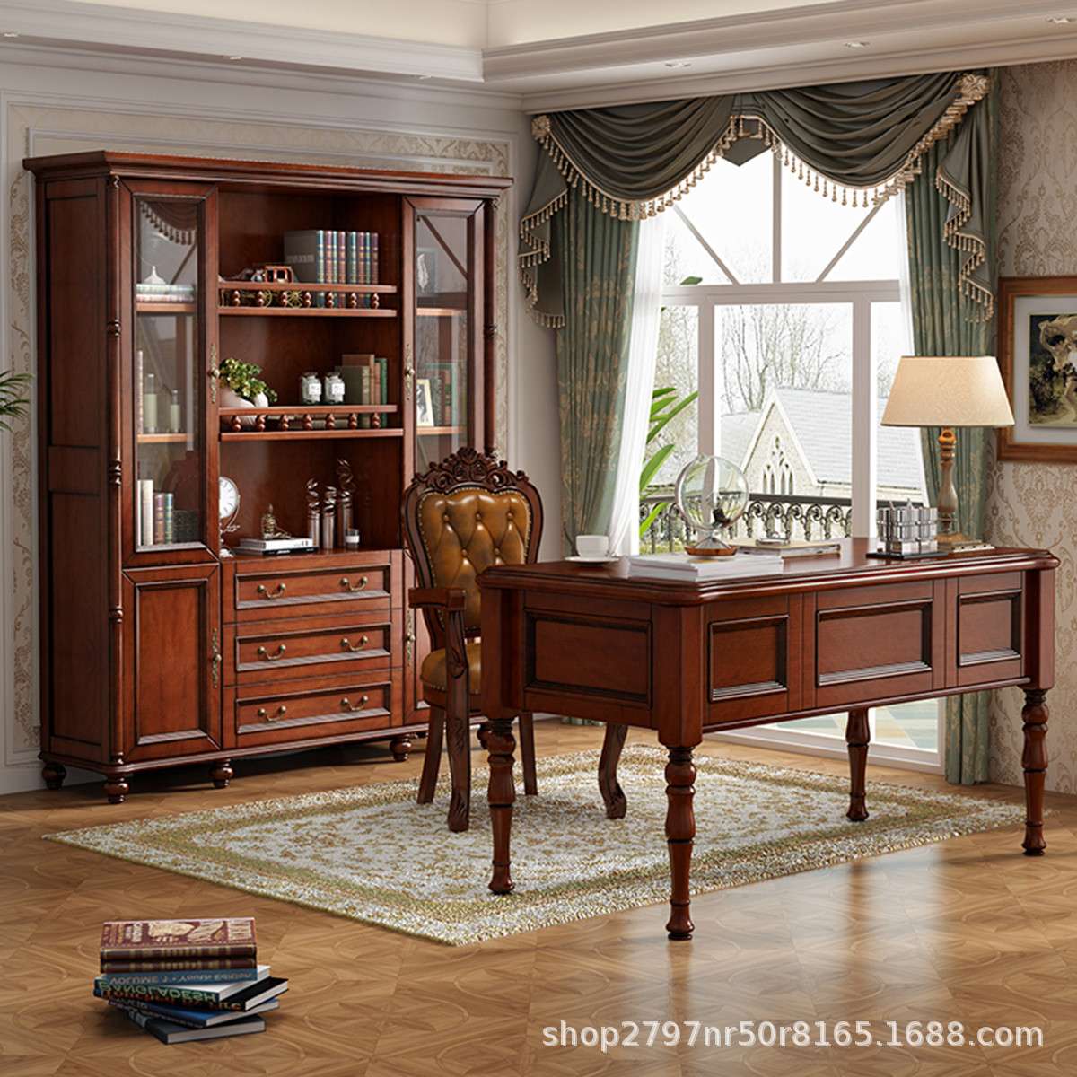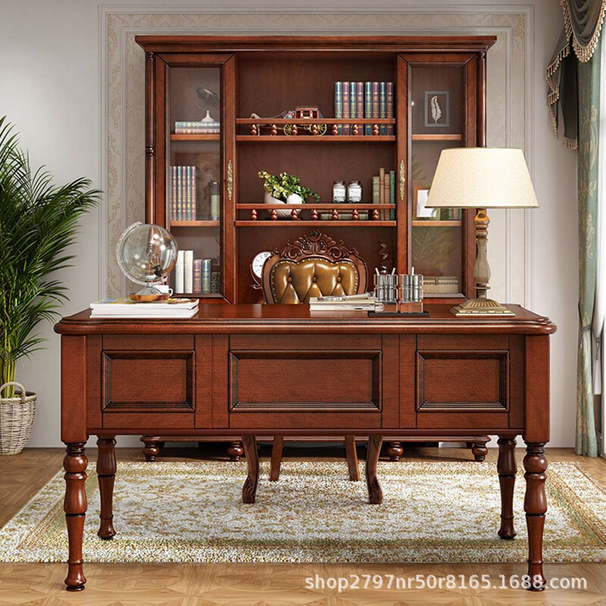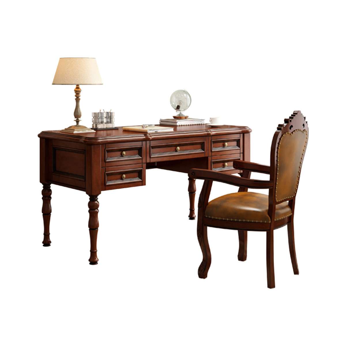 美式乡村实木书桌椅组合学生台式电脑桌简约现代家用写字台咖啡色