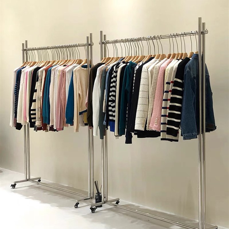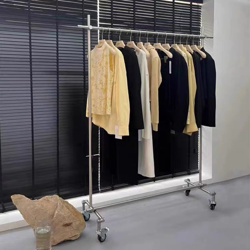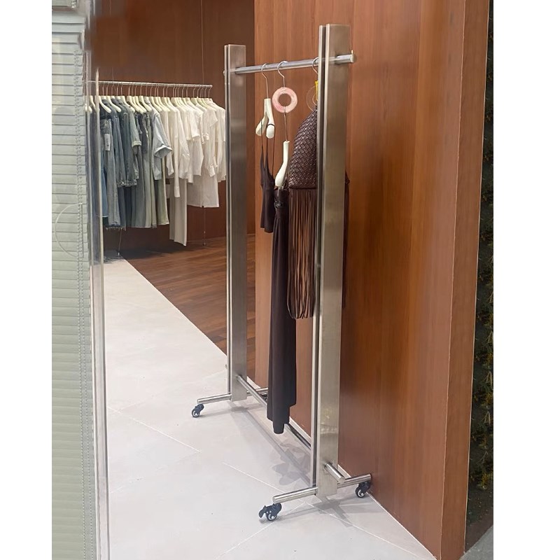 服装店一体展示架镜面不锈钢落地C架移动挂衣架买手店货架整个发