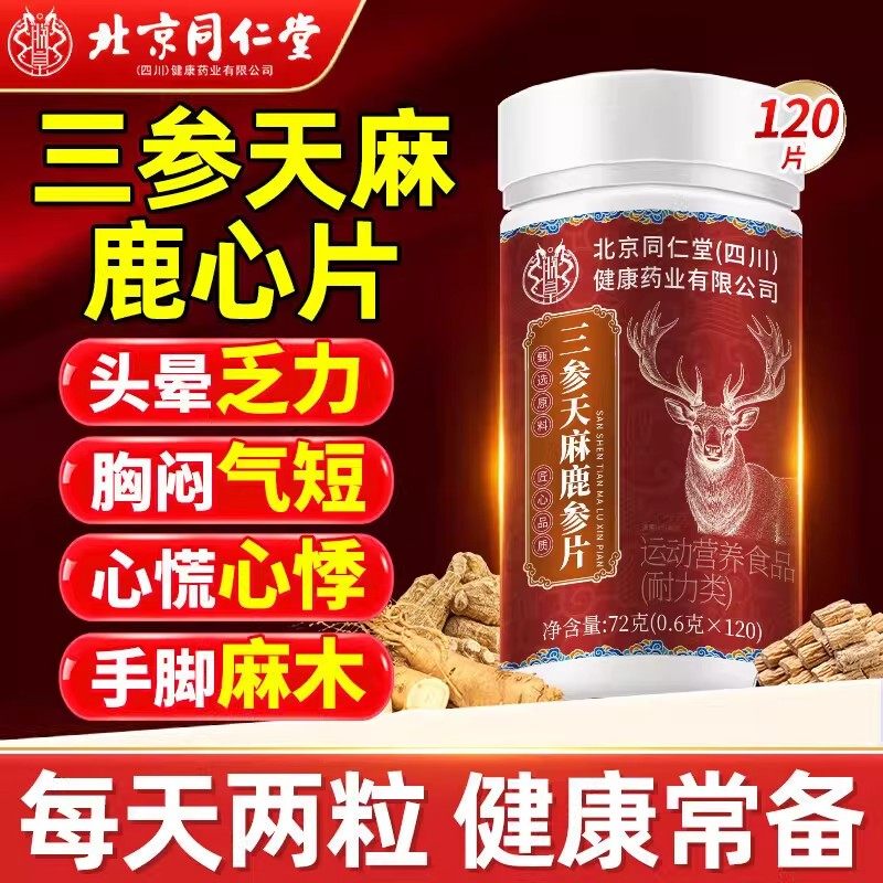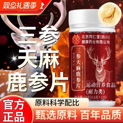 北京同仁堂三参天麻杜仲叶鹿心片官方正品鹿参甄选片草本萃取现货