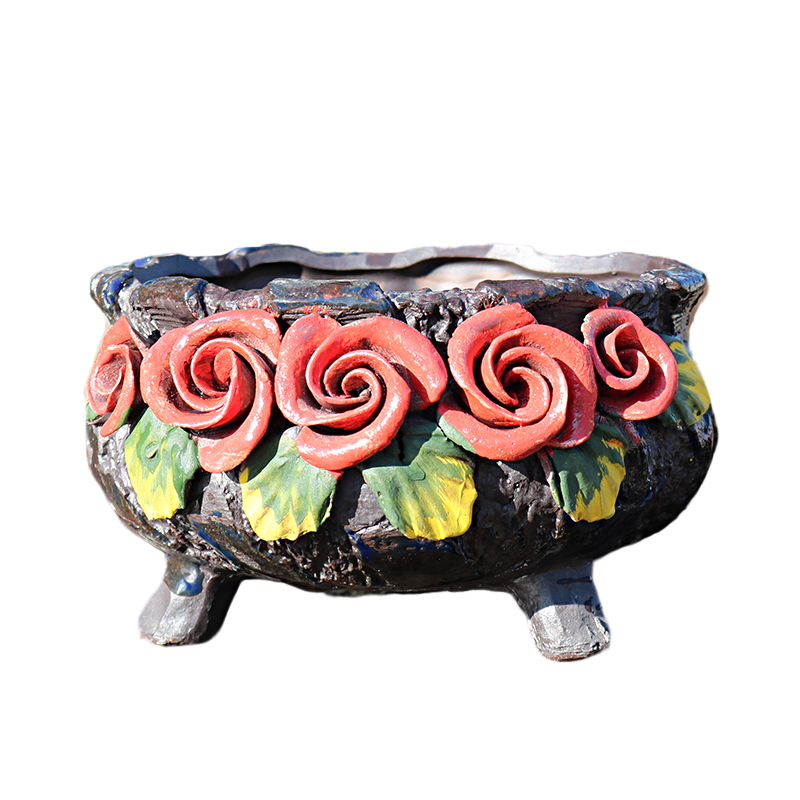 述息红玫瑰多肉花盆紫砂粗陶透气纯手工捏花粘花创意个性肉肉花盆