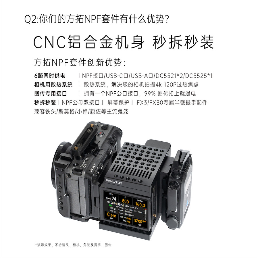 松下G9M2 II兔笼拓展散热风扇 改装电影机 F970电池供电 方拓套件