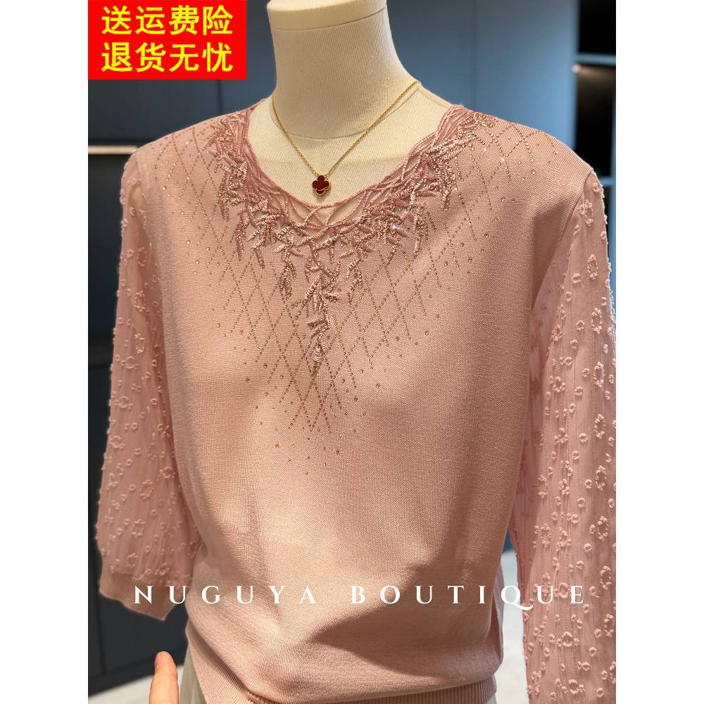 时尚洋气妈妈装七分袖雪纺针织衫春夏新款上衣减龄气质中老年小衫