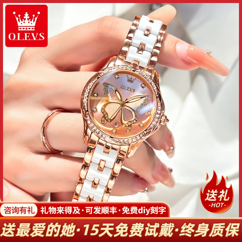 2025年新款正品名牌女士手表女款轻奢小众防水陶瓷石英甜美女表