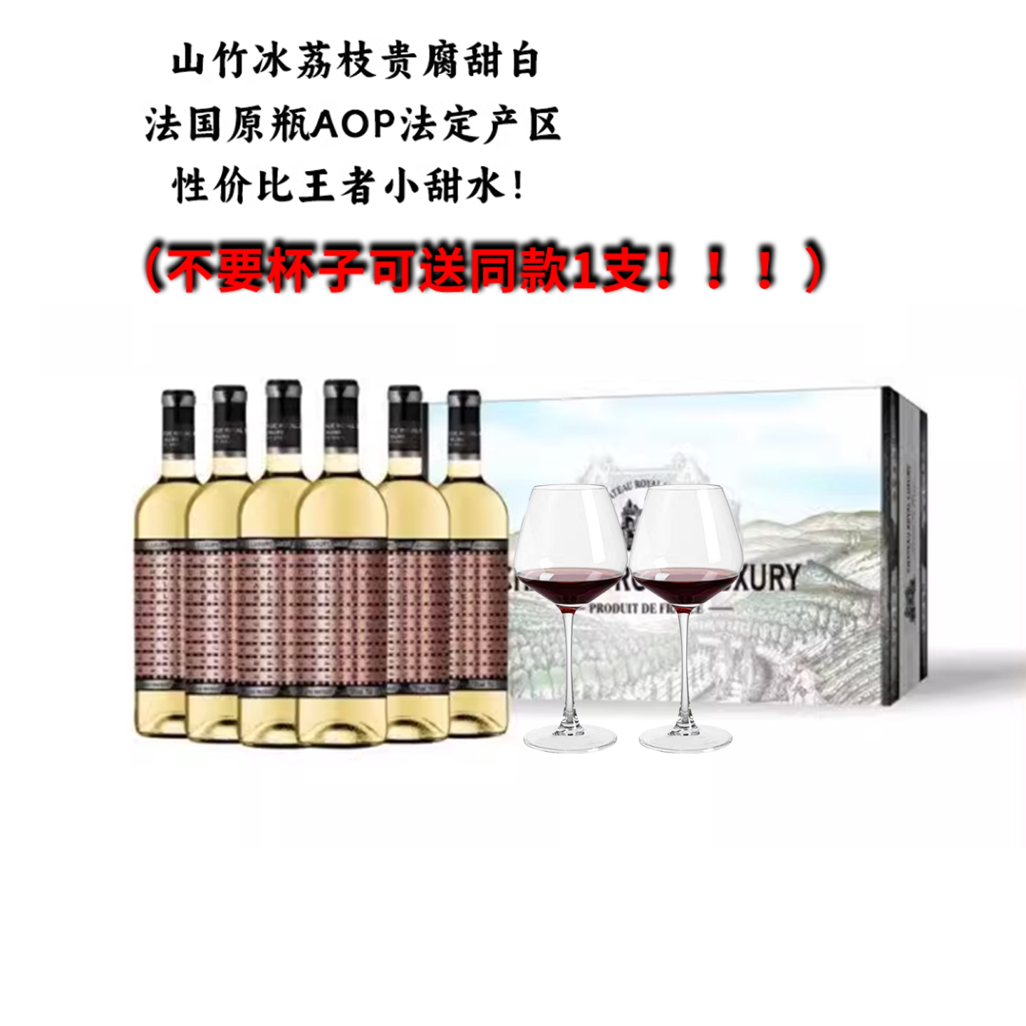 山竹荔枝山泉冰法国原瓶进口13度AOP级贵腐甜白葡萄酒750ml礼盒装