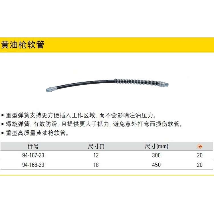 史丹利12/18寸黄油枪软管94-167-23 300MM/168 450MM 可弯曲软管