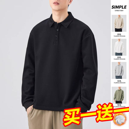 Yishion以纯官方时尚正品加绒polo衫男款长袖t恤男士秋冬打底加厚