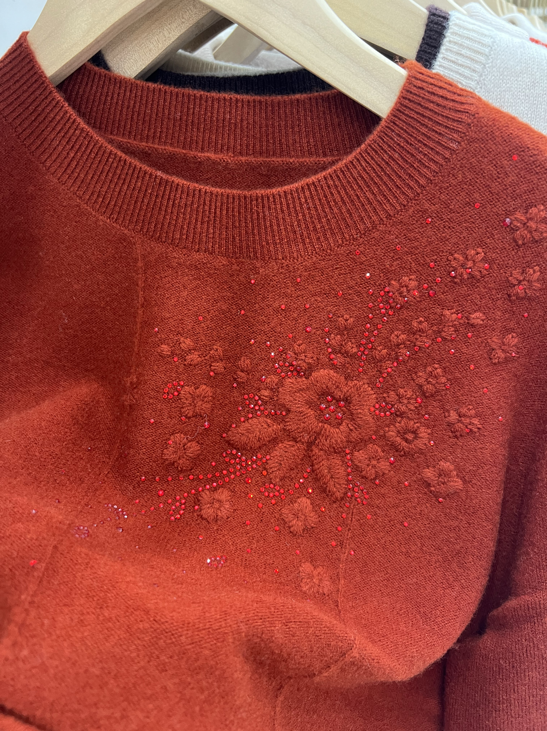 鄂尔多斯市专柜高端女中老年洋气妈妈装春秋冬刺绣纯色圆领毛衣