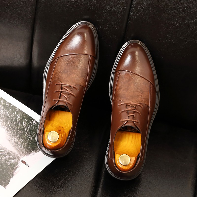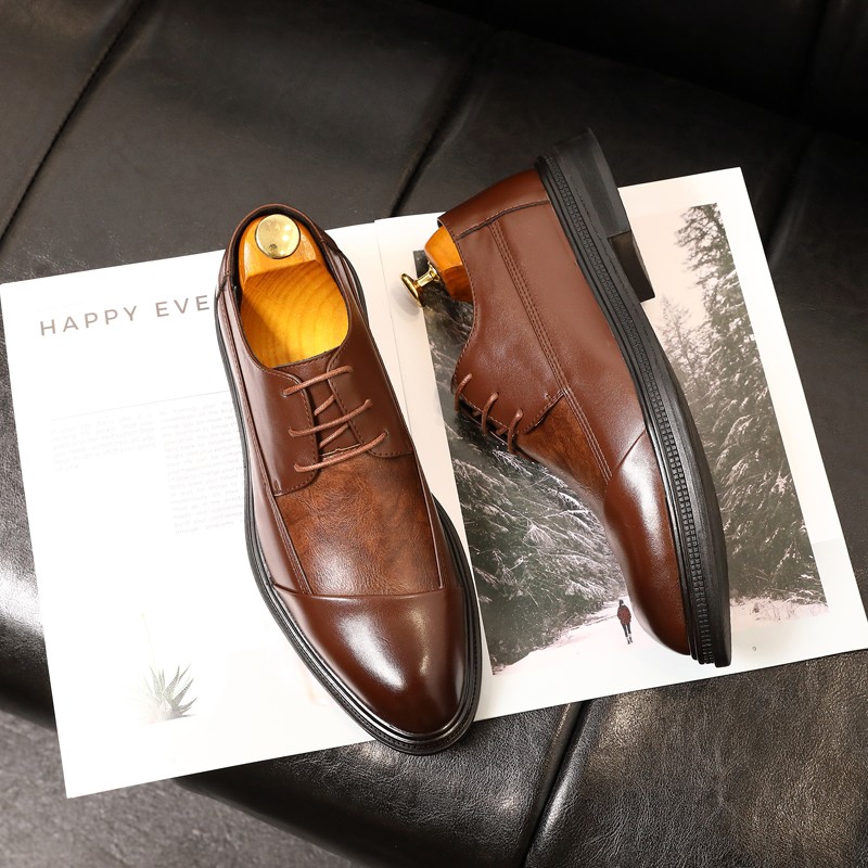 皮鞋男韩版潮流英伦尖头系带婚鞋商务正装百搭冬季休闲内增高男鞋