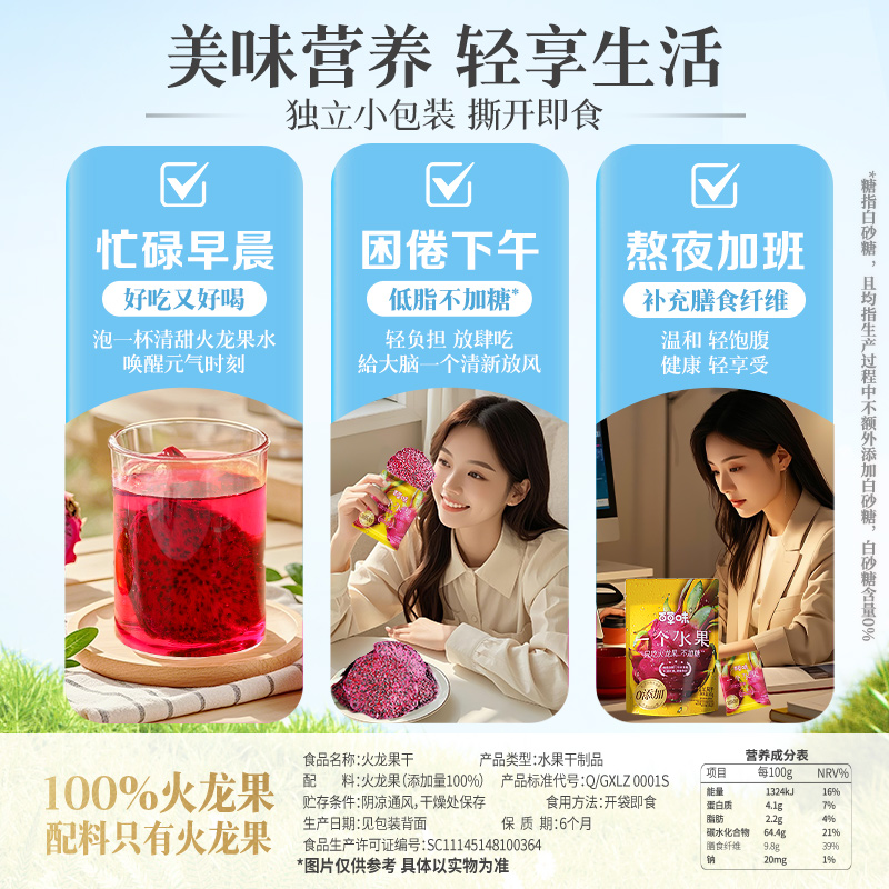 满减百草味火龙果干健康无添加小零食果干果脯蜜饯烘焙泡茶
