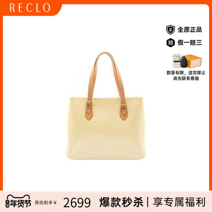 中古LV路易威登女包B级9新Tote Bag托特包漆皮托特包白色