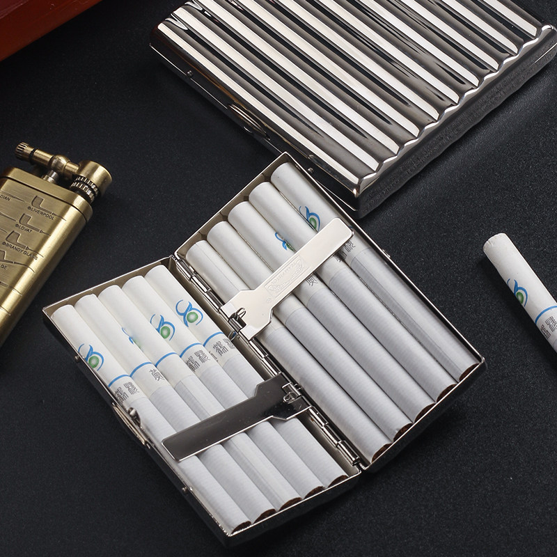 粗烟金属烟盒10-20支装创意超薄男士便携烟夹瓦楞卡槽卷烟盒防压