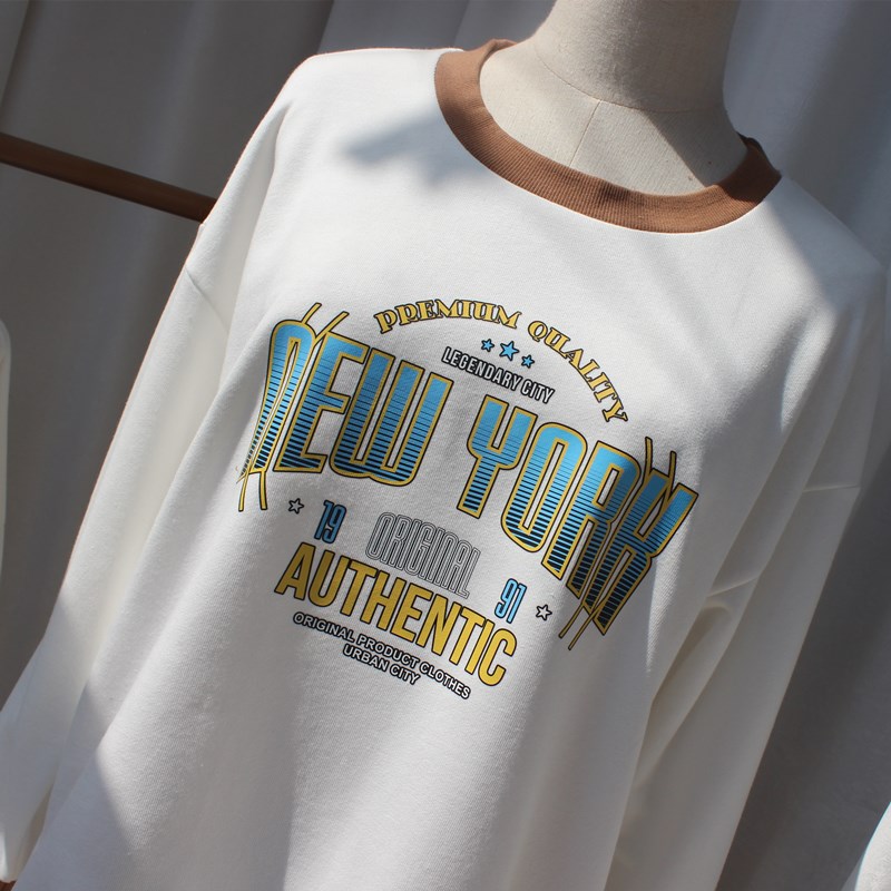 2025春装新款韩版宽松大码慵懒字母印花长袖套头女白色卫衣上衣