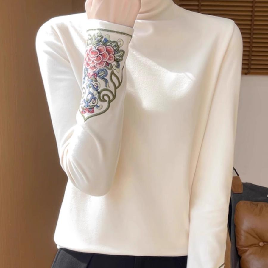 2025冬季新款国风新中式刺绣半高领打底衫女德绒磨毛加厚内搭上衣