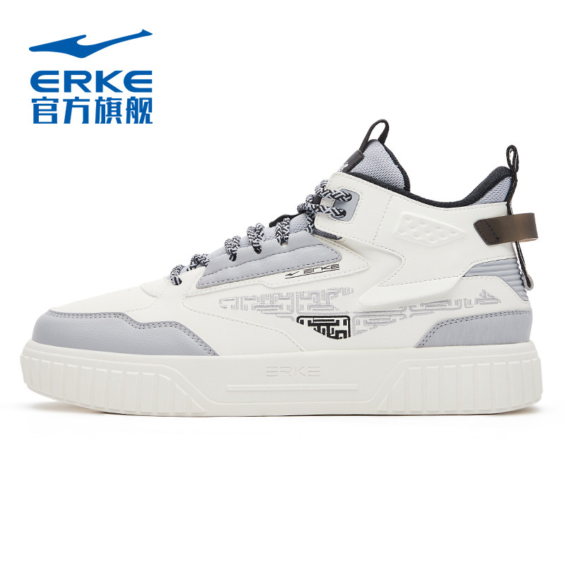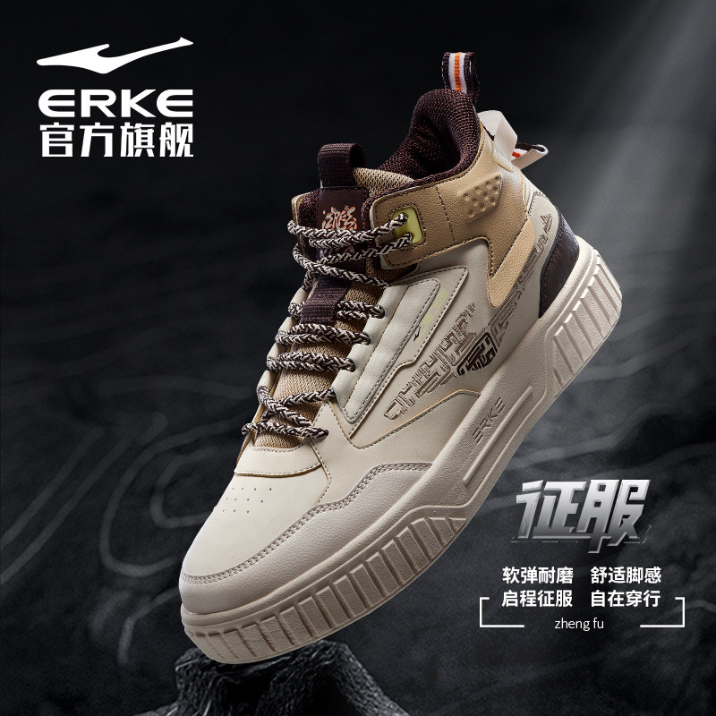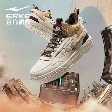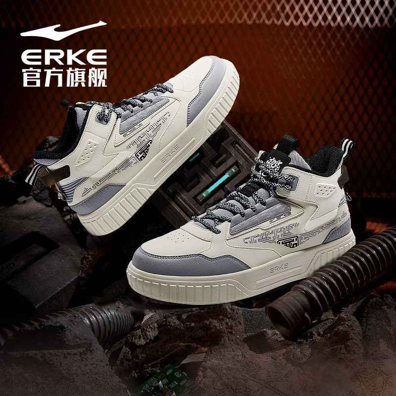 征服鸿星尔克男鞋高帮板鞋皮革面防水男冬季加绒棉鞋休闲运动鞋子