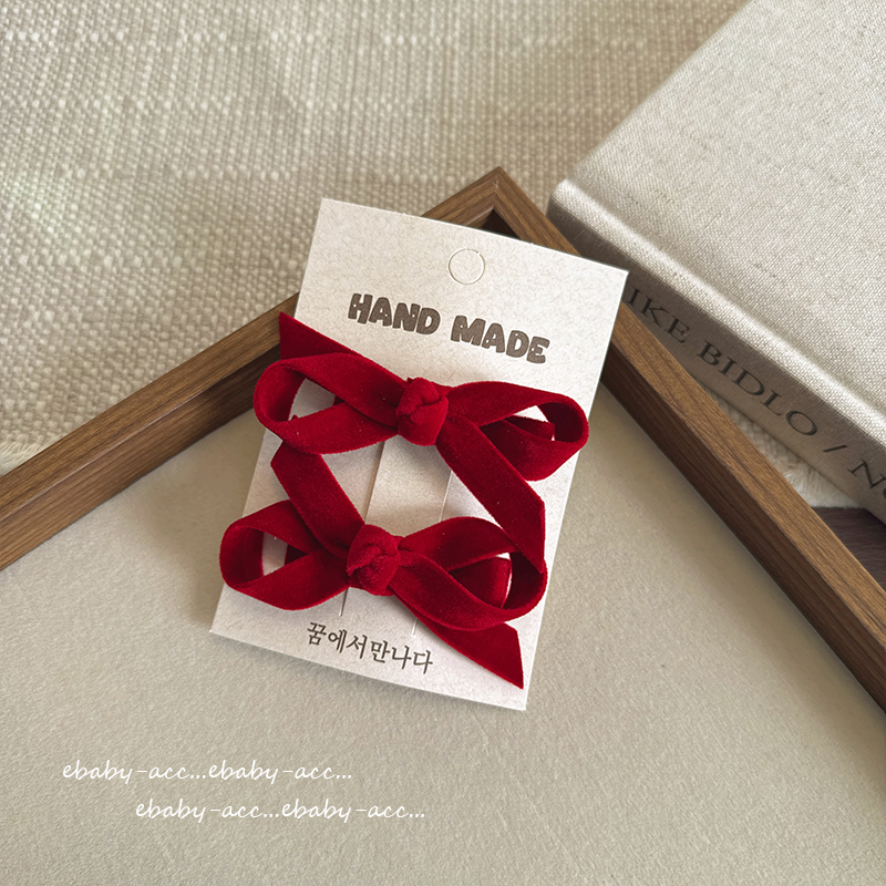 儿童新年红色发卡丝绒酒红蝴蝶结发夹侧边碎发夹公主马尾头绳发圈