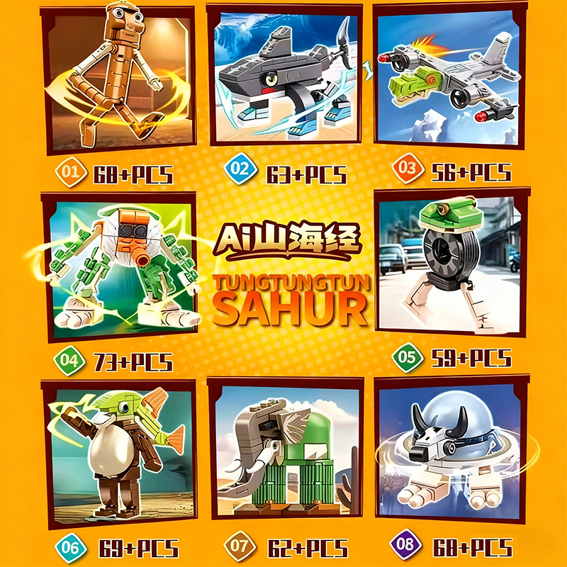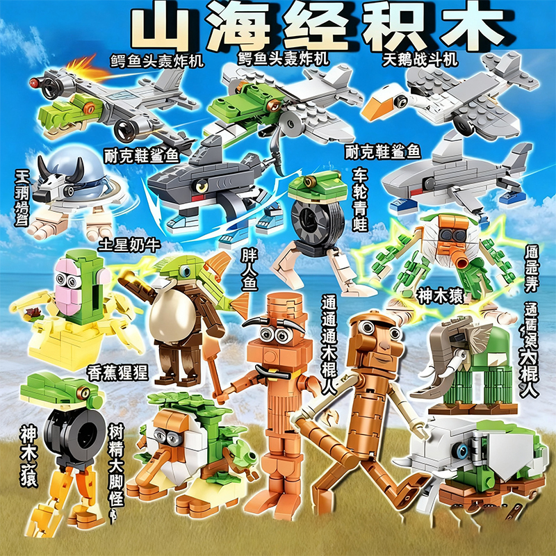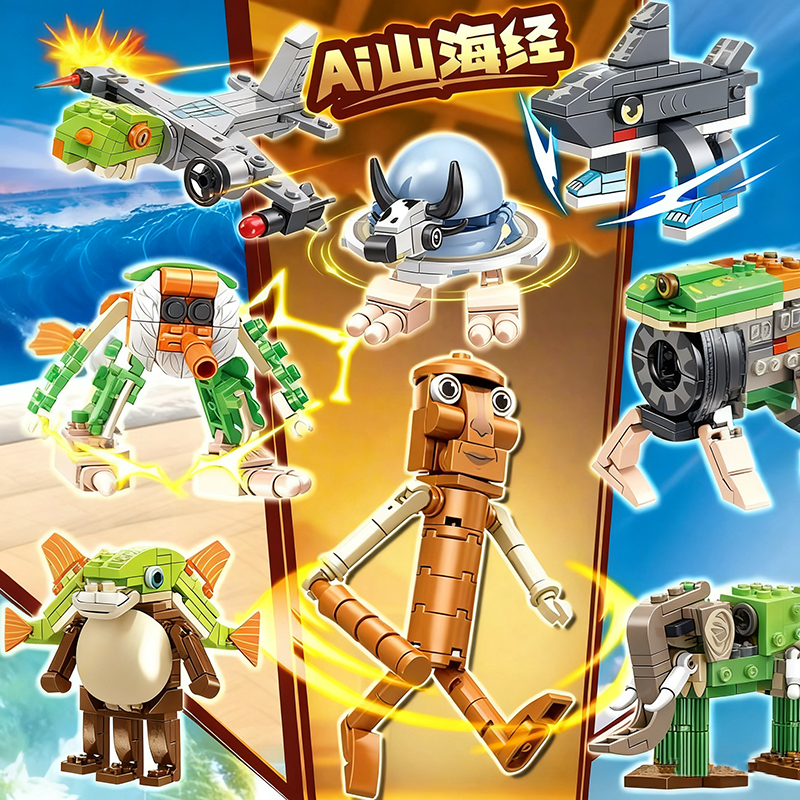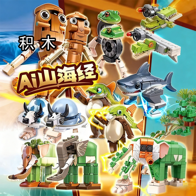 外国山海经积木玩具ai国外美国全套融合怪神兽拼装人公仔合体海外