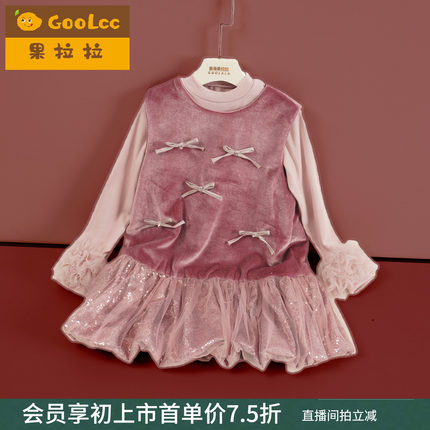 女童甜美风丝绒连衣裙2026秋冬新款加绒加厚保暖蝴蝶结亮片公主裙