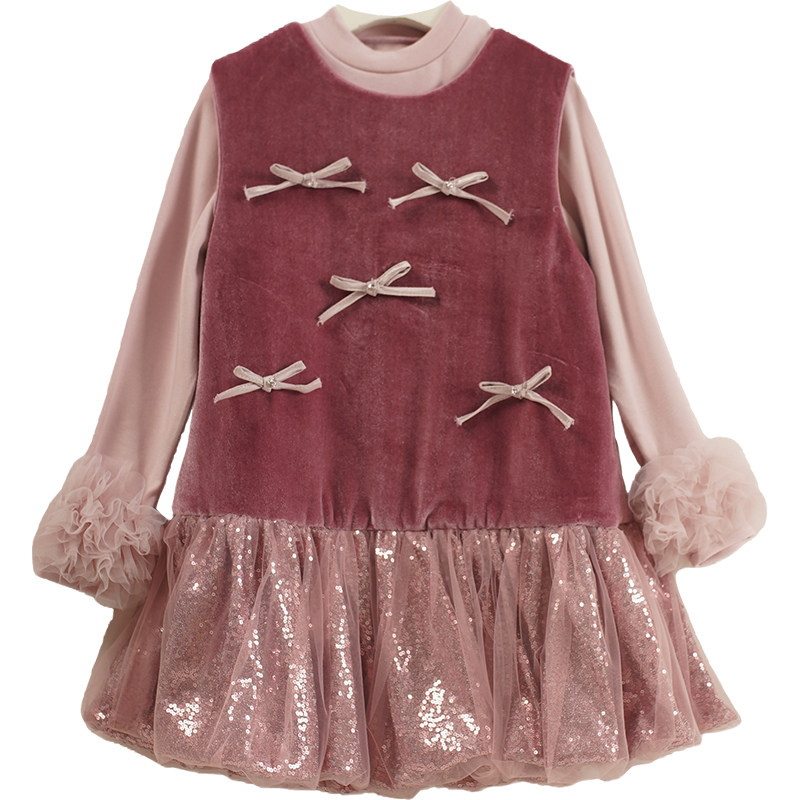 秋冬女童丝绒加厚亮片公主裙
