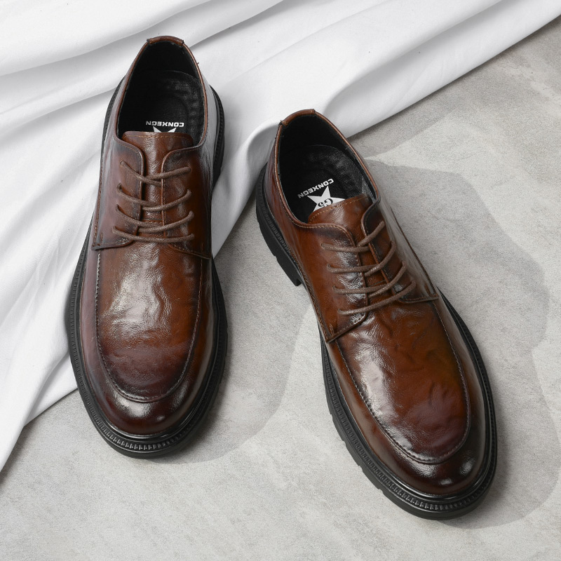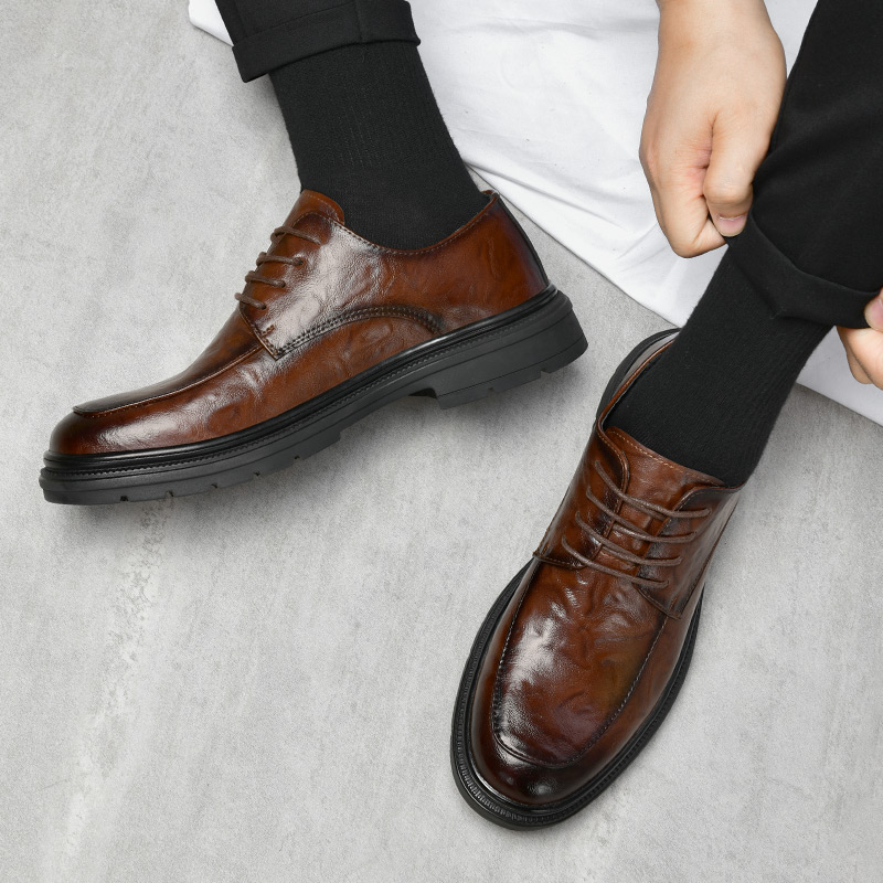 皮鞋男款2025新款真皮秋季透气商务正装软底英伦风年轻人休闲鞋子