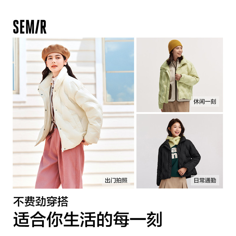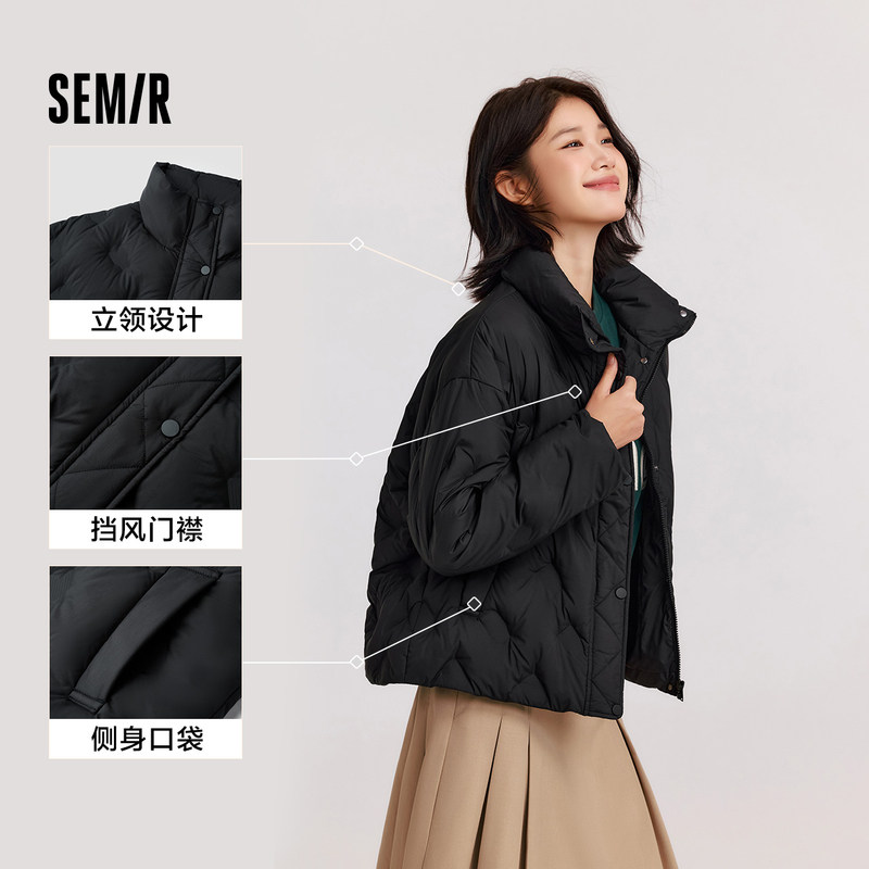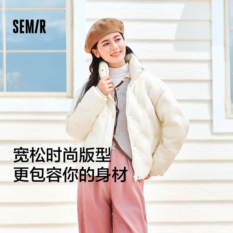 [商场同款]森马羽绒服女薄款千鸟格90绒宽松2025防水防风立领冬装