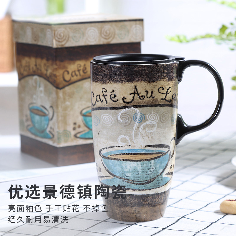爱屋格林大容量陶瓷马克杯带盖高颜值家用水杯礼盒款情人节礼物