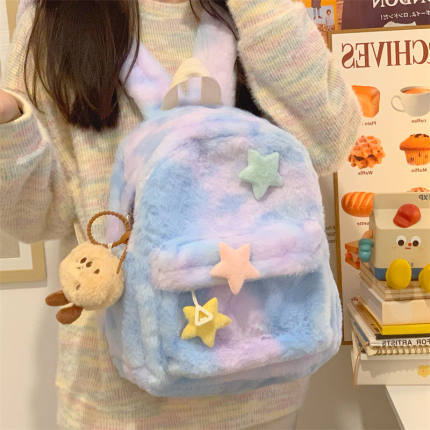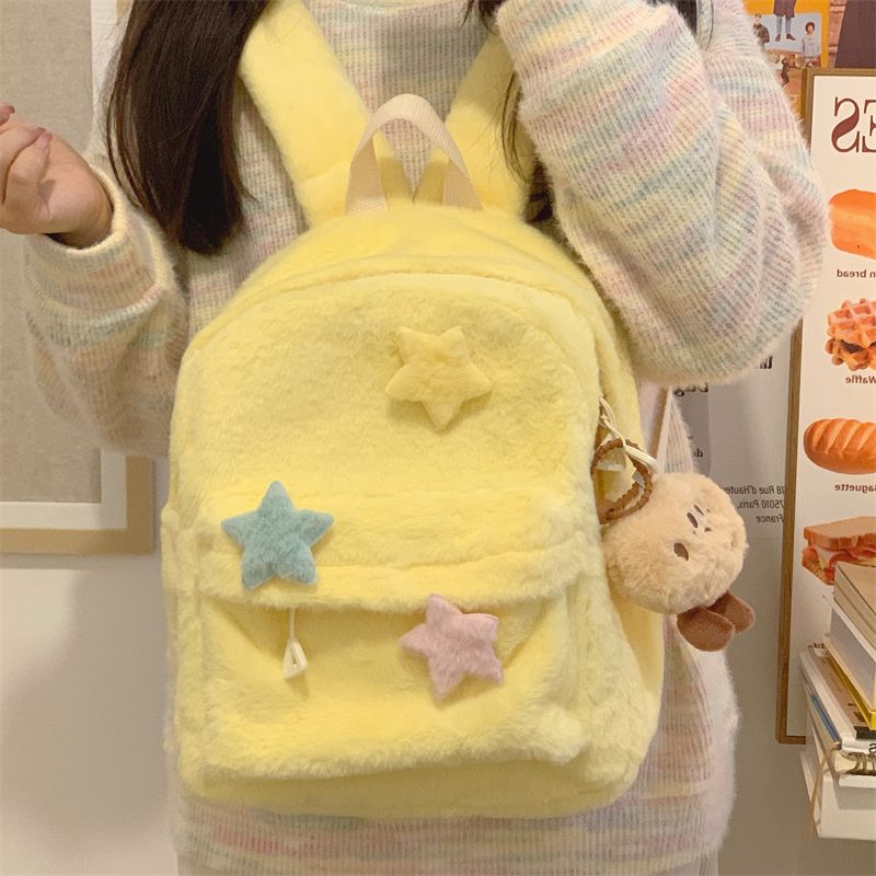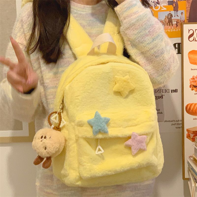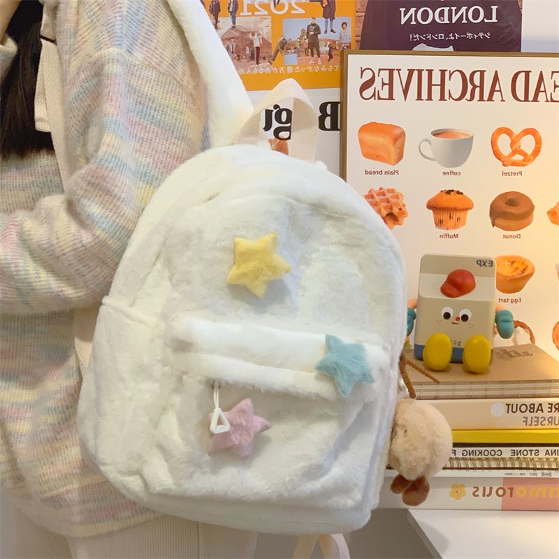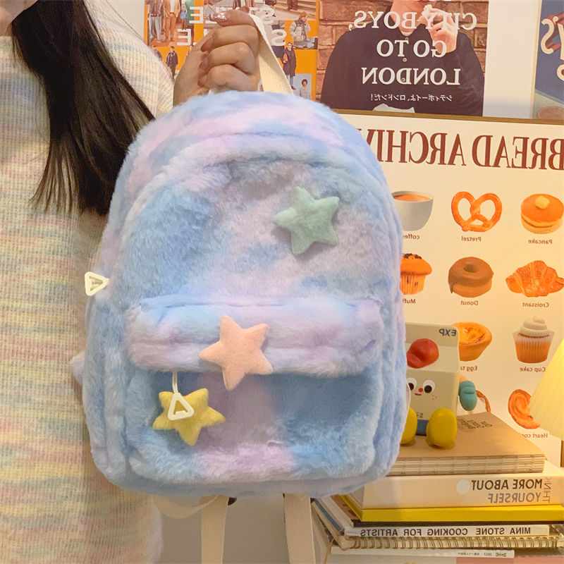 星星双肩包可爱少女毛绒大学生迷你书包多巴胺小众初高中高中背包